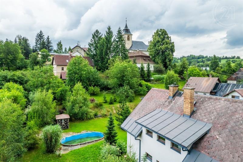 Nabízený dům se nachází na klidném místě v zástavbě rodinných domů a nabízí výjimečný prostor – jak v interiéru, tak na přilehlém pozemku o rozloze 2 354 m². Dům je samostatně stojící, kompletně podsklepený, se dvěma nadzemními podlažími, sedlovou střechou a lodžiemi s výhledem do krajiny. V každém podlaží najdete vlastní obytné zázemí včetně kuchyně, koupelny a WC, což z domu činí ideální příležitost pro dvougenerační bydlení, kombinaci bydlení a pronájmu, nebo menší rodinný penzion.