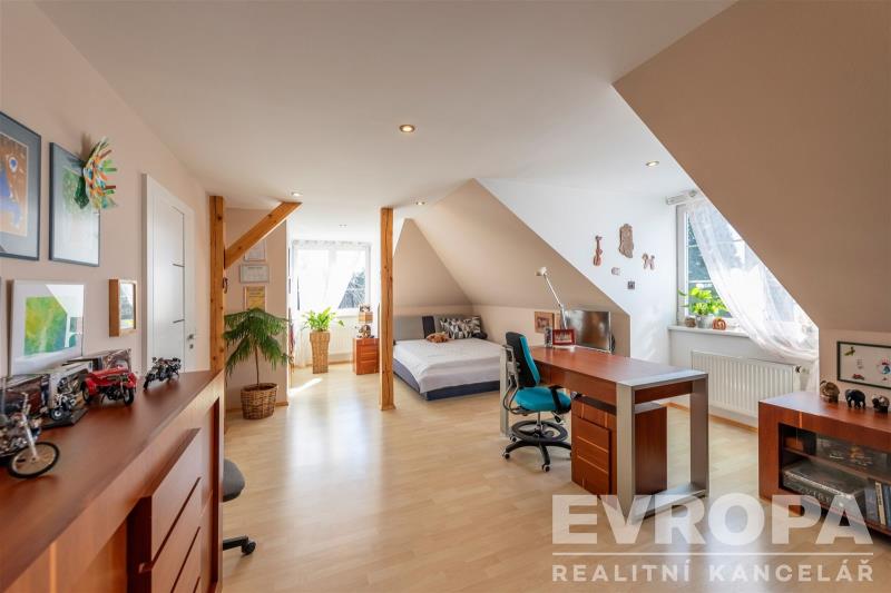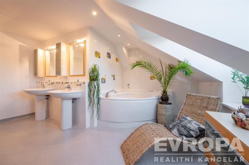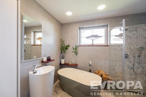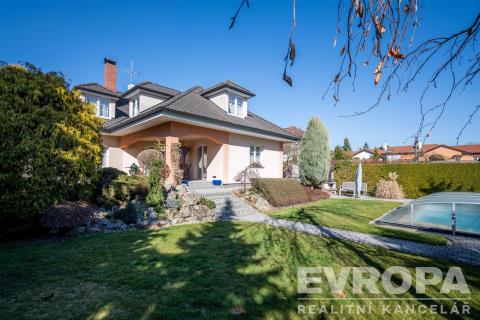 Hledáte domov, kde se kvalita potkává s komfortem, soukromí s elegancí a prostor s promyšleným zázemím? Tento reprezentativní dům 6+kk s užitnou plochou 363 m², dvojgaráží a překrásnou zahradou o rozloze 972 m² vás nadchne na první pohled. Co si zamilujete: • Velkorysý obývací pokoj s krbem a přímým vstupem na krytou terasu (30 m²) – ideální pro letní snídaně i večerní víno • Kuchyň snů s ostrůvkem a prémiovými spotřebiči vstup na terasu • Krytý bazén 7×3 m a venkovní krb pro chvíle relaxace • Zahrada jako z katalogu – vzrostlé stromy, záhony, studna a automatická závlaha • Dvojgaráž + 2 parkovací místa před domem za elektrickou bránou Roční náklady na provoz domu jsou 70 000, Kč Dispozice: Přízemí: světlý obývák s krbem, kuchyň s jídelnou, ložnice s výstupem na terasu, pracovna, koupelna, samostatné WC, šatna, vstupní hala, technická místnost, dvojgaráž. Patro: tři pokoje (jeden velmi prostorný), šatna, samostatné WC a velká koupelna s vanou a prostorem pro domácí fitness. Technické a komfortní vybavení: • Podlahové topení v přízemí, patro s radiátory a klimatizací • Dům napojen na plyn, vodu, kanalizaci i elektřinu • Centrální vysavač a zabezpečovací systém • Samostatný plynový kotel pro topení a teplou vodu Tento dům je dokonalým útočištěm pro rodinu, která hledá klid, komfort a kvalitu. Zavolejte si o více informací nebo rovnou o prohlídku – takové místo se dlouho na trhu neohřeje.