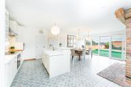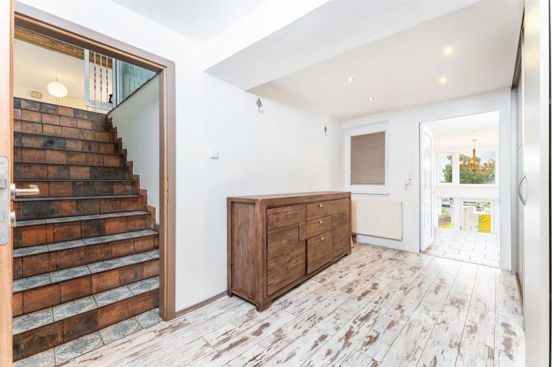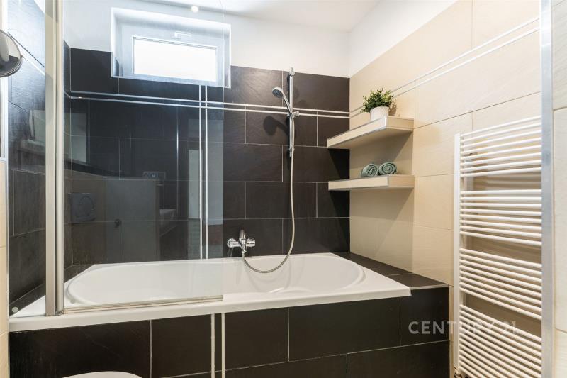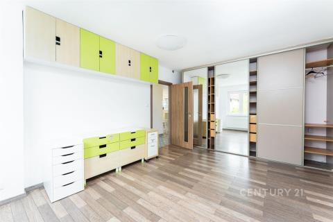 V obytné části domu najdete čtyři ložnice a dvě koupelny, přičemž jedna z ložnic je umístěna v přízemí – ideální volba pro hosty, seniory nebo pro ty, kdo chtějí mít pracovnu oddělenou od hlavního patra. Z této ložnice je navíc přímý vstup na zadní zahradu, což zajišťuje příjemné propojení interiéru s exteriérem.