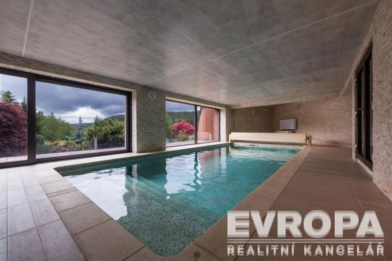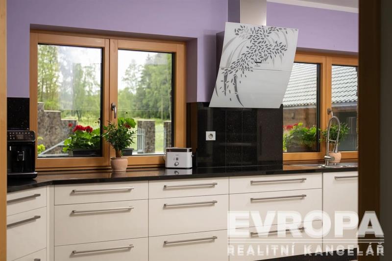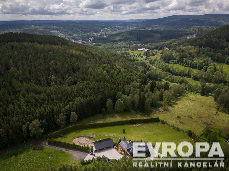 Skvostné rodinné sídlo v srdci Krušných hor. Představte si místo, kde se bydleni setkává s přírodou. Místo, kde každý den začíná nádherným výhledem do údolí Krušných hor a kde každý kout domova nabízí komfort a pohodu. Přesně tohle nabízí naše exkluzivní rodinné sídlo, které čeká na svého nového majitele. Tento velkorysý dům, či spíše vila, je navržen pro ty nejnáročnější z vás, kteří hledají něco opravdu výjimečného. Už při prvním pohledu vás okouzlí prostorný a světlem prozářený obývací pokoj s krbem, kde se snoubí osobitý styl s pohodlím. Prakticky zařízená kuchyň s jídelním koutem a komorou splní všechna vaše kulinářská přání. Dva nezávislé pokoje jeden s koupelnou a šatnou, které mají přímý vstup na terasu – ideální místo pro ranní kávu s výhledem na probouzející se přírodu. Otevřené patro galerie s ložnicí a vlastní koupelnou nabízí ničím nerušený výhled do okolní krajiny. Pro relaxaci je tu domácí wellness s bazénem 4x10 m, saunou s odpočívárnou a vířivkou výhledem do údolí, klubovna. Ať už hledáte únik před stresem každodenního života, nebo místo pro setkávání s přáteli, toto sídlo vám poskytne obojí. Další prostory jako klubovna, herna či technická místnost jsou samozřejmostí. Celý pozemek, o rozloze 9319 m², je chráněn betonovým plotem obloženým břidlicí a 400KS čtyřmi sty kusy vzrostlých tůjí, což zaručuje naprosté soukromí. Na nádvoří domu se nachází sousedící dům o ploše 230 m² s prostornou garáží 130 m², která pojme až čtyři vozy, motorky, kola a zahradní techniku. K dispozici byt 60m2 pro hosty s terasou, technické zázemí, dílna, myčka. Fotovoltaická elektrárna FVE 20 kWp postavená na pozemku zajišťuje energetickou soběstačnost domu, nebo dokonce zajímavý příjem. A pokud jde o technické zázemí, dům je vybaven podlahovým topením vytápěným dvěma tepelnými čerpadly 2 x IVT 12 kw se zemním kolektem 2 x 400m. Země - voda v kombinaci s lokálním vytápěním krbem, bezpečnostními rozvody pro instalaci kamer, zásobníkem na vodu o objemu 400 l a vlastní vratnou studnou. Místo a zasazení domu do přírody okolních hor je nepopsatelné, musí se vidět. Přijďte se přesvědčit sami a nechte se okouzlit tímto jedinečným sídlem, které nabízí vše, co si můžete přát.