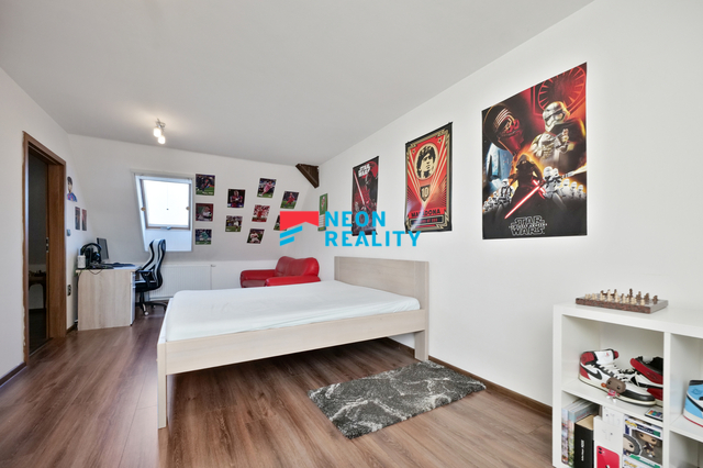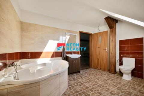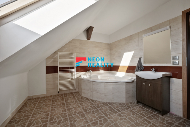 Do patra vedou točené schody s dřevěnými nášlapy. Horní patro prošlo rekonstrukcí přibližně před deseti lety, během níž bylo původní podkroví proměněno v krásný, útulný obytný prostor. Nachází se zde koupelna s rohovou vanou, toaletou a střešními okny, která interiér příjemně prosvětlují. Dále je zde jeden pokoj vhodný jako ložnice či dětský pokoj a otevřená podkrovní část, kterou lze dle potřeby snadno přizpůsobit a rozčlenit na další pokoje či pracovnu.