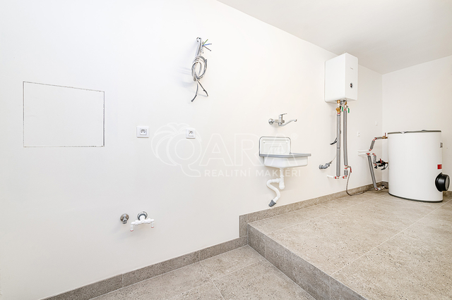 Mírná spotřeba: Roční spotřeba dodané energie pro oba byty 33,5 MWh/rok. Největší podíl tvoří vytápění 24,8 MWh/rok, ale z toho je 10,5 MWh/rok dřevo. Takže pokud budete topit dřevem, výrazně klesne platba za elektřinu. Dále příprava teplé vody 7,8 MWh/rok a osvětlení 0,9 MWh/rok. Uvedené údaje jsou orientační.