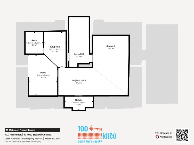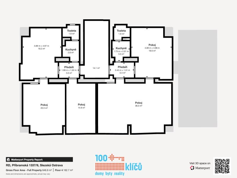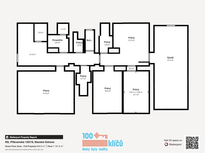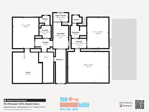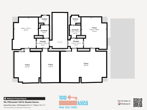 Realitní kancelář 100klíčů Vám nabízí pětipodlažní dům umístěný v blízkosti centra Ostravy, na adrese Příbramská 9. Jedná se o jedinečnou investiční příležitost na Slezské Ostravě s širokou škálou využití a potenciálem. V současné chvíli je nemovitost využívána jako sídlo firmy s kancelářskými a skladovacími prostory. Součástí je prostorná bytová jednotka v podkroví domu. K domu náleží dvě velké garáže a velkou výhodou je dlážděné parkoviště až pro dvanáct vozů se závorou na dálkové ovládání. Na pozemku se dále nachází samostatná garáž s elektrickými vraty, která může sloužit i jako další úložný prostor či sklad. Původní dispozicí domu bylo sedm samostatných bytových jednotek a do tohoto stavu lze prostory opět jednoduše upravit. Také v katastru nemovitostí je dům veden jako bytový. Využití je nicméně variabilní, ať už jako sídlo společnosti, ordinací či jako okamžitý pronájem současných kanceláří se skladovým zázemím. Dispozice: 1.NP - 223 m2 - Skladovací prostory, dvě garáže propojené interiérovými dveřmi s objektem (31 a 40 m2). 2.NP - 164 m2 - Dvě jednotky se sociálním zázemím, vstup hlavními dveřmi z uliční strany, rovněž ze strany z parkoviště za domem. 3.NP - 164 m2 - Dvě jednotky se sociálním zázemím, momentálně dlouhodobě pronajaté jako sídlo firmy. 4.NP - 164 m2 - Dvě jednotky se sociálním zázemím. 5.NP - 111 m2 - Podkrovní byt s obývacím pokojem, jídelnou, kuchyní, ložnicí, koupelnou s rohovou vanou, šatnou a balkonem s úchvatným výhledem na město. Celková plocha stávajících kancelářských prostor 492 m². Zastavěná plocha včetně garáží 255 m2. Parkoviště a ostatní plocha 460 m2. Zahrada 216 m2. Podrobný popis viz přiložené půdorysy a virtuální prohlídka domu. Vytápění řešeno individuálními kondenzačními TUV plynovými kotli v každé jednotce. Dům je napojen na elektřinu, vodu, plyn a kanalizaci. Celý objekt má strukturovanou LAN síť a serverovna v 1.NP je klimatizovaná. Mikrovlnné připojení na internet PODA. Dům prošel v posledních letech zdařilou kompletní rekonstrukcí a je připraven k okamžitému využití dle Vašich představ. Jedná se o klidné místo s výbornou dostupností do centra Ostravy. Nemovitost nemá právní problém a není zatížena omezením vlastnického práva. S financováním Vám rád pomůže náš hypoteční specialista. Pro další informace a domluvení prohlídky nás neváhejte kontaktovat.