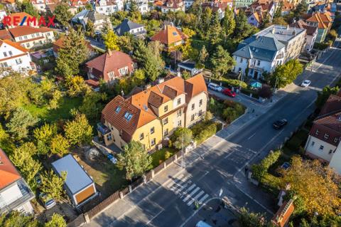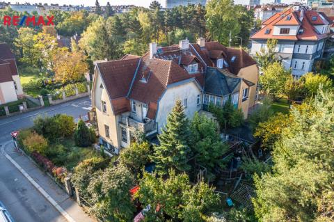 Ke koupi nabízím velký rodinný dům se třemi byty v ulici Na květnici, Praha 4 Nusle, přímo naproti divadla Na Jezerce. Dispozičně je dům koncipován jako dvoupodlažní s obytným podkrovím a suterénem. Celkem jsou zde tři oddělené bytové prostory (v 1. podlaží, ve 2. podlaží a v obytné části podkroví). Stavba z roku 1922 tvoří polovinu dvojdomu postaveného v izolované poloze na rohovém pozemku mezi ulicemi Na Jezerce a Na květnici. Dům je ze tří stran volný, jednou stranou přiléhá k druhé polovině dvojdomu. V průběhu let byly realizovány drobné přestavby, současný stav předpokládá celkovou rekonstrukci. V rámci té může vzniknout velké firemní či rodinné sídlo, stejně tak je možné zachovat stávající rozdělení na 3 samostatné bytové jednotky. Územní plán umožňuje všechny tyto varianty. Pozemek má celkovou výměru 612 m², z toho 149 m² je zastavěná plocha. Díky rohovému umístění stavby v rámci pozemku je na zahradě dostatek místa, které využijete pro posezení, zahradničení nebo pohodlné parkování. Vjezd je možný z obou přilehlých ulic. Dostupné jsou všechny inženýrské sítě, elektřina, plyn, voda i kanalizace. Dále je na pozemku stará studna. Oceníte množství zeleně v okolí, jakož i pěší dostupnost hromadné dopravy. Stanice metra Pankrác je vzdálena jen 1 km (20 min. chůze nebo 3 min. jízdy autobusem). Z oken domu se pak díváte na protější rozlehlý park Jezerka s usedlostí Šustrovka, ve které najdete mimo divadla také kvalitní restauraci. Pro více informací nebo sjednání prohlídky mě kontaktujte. Těším se na viděnou!