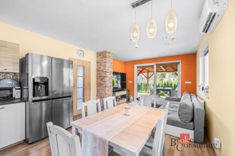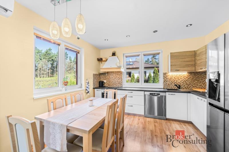 Rodinný dům 5+kk s krytou terasou, zahradou a parkováním až pro 6 vozů | Břasy, okres Rokycany Nabízím k prodeji moderní dvoupodlažní dřevostavbu, situovanou v klidné části obce Břasy na pozemku o celkové výměře 973 m². Dům nabízí komfortní rodinné bydlení s důrazem na praktičnost, dostatek prostoru a příjemné propojení interiéru se zahradou a okolní přírodou. Užitná plocha domu činí 93 m². Dominantou přízemí je světlý obývací prostor propojený s kuchyňským koutem a přímým vstupem na krytou terasu a zahradu. Díky velkým francouzským oknům působí celý prostor vzdušně a přirozeně navazuje na venkovní část domu, která nabízí ideální místo pro rodinné posezení, relaxaci nebo letní grilování. Velkým benefitem je krytá terasa orientovaná do zahrady a směrem k lesu, která poskytuje příjemné soukromí a možnost využití od jara až do podzimu. V přízemí se dále nachází samostatný pokoj vhodný například jako pracovna, pokoj pro hosty nebo ložnice, koupelna se sprchovým koutem, vstupní část a chodba. V patře domu jsou umístěny dva dětské pokoje, ložnice a druhá koupelna vybavená vanou, což poskytuje dostatek komfortu pro vícečlennou rodinu. Součástí nemovitosti je udržovaná zahrada navazující na okolní zeleň a lesní porost, díky čemuž celé místo působí velmi klidným a soukromým dojmem. Parkování je zajištěno přímo na vlastním pozemku s kapacitou až pro 6 automobilů. Součástí prodeje je také plechová garáž s možností krytého parkování pro dva vozy. Voda je aktuálně řešena prostřednictvím vlastní studny, přičemž na hranici pozemku se nachází také možnost napojení na obecní vodovodní řad. Odpad je řešen pomocí vlastní čistírny odpadních vod (ČOV). Vytápění domu a chlazení zajišťuje tepelné čerpadlo v kombinaci s klimatizací. V obývacím prostoru je zároveň připraven komín pro možnost napojení krbových kamen, díky čemuž lze v případě potřeby využívat také vytápění na tuhá paliva. Celkový provoz domu je jinak řešen elektrickou energií. Díky kombinaci moderní dřevostavby, energetické náročnosti třídy B a současných technologií nabízí dům komfortní a zároveň úsporný provoz. Obec Břasy nabízí kompletní občanskou vybavenost včetně mateřské a základní školy, potravin, lékaře i dalších služeb pro pohodlné každodenní fungování. Významným benefitem lokality je také blízkost volnočasového areálu Ultramarinka, který se nachází minutu jízdy autem od domu. Areál nabízí široké možnosti sportovního a rekreačního vyžití včetně bruslení, cyklistiky, volejbalu nebo příjemného posezení s občerstvením. Výborná je také dopravní dostupnost. Do Rokycan se dostanete za 11 minut, do Plzně za 16 minut a do Prahy na Zličín za 45 minut. Dům je ideální volbou pro rodinu hledající moderní bydlení v klidné lokalitě v blízkosti přírody, zároveň však s velmi dobrou dostupností do Rokycan, Plzně i Prahy.