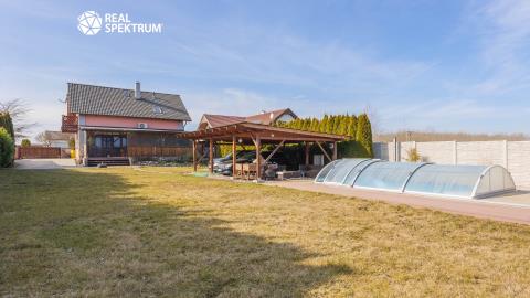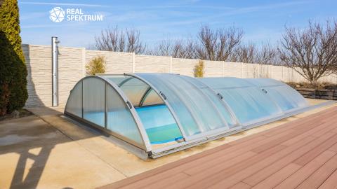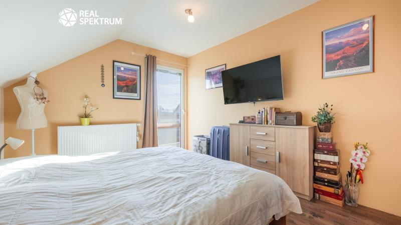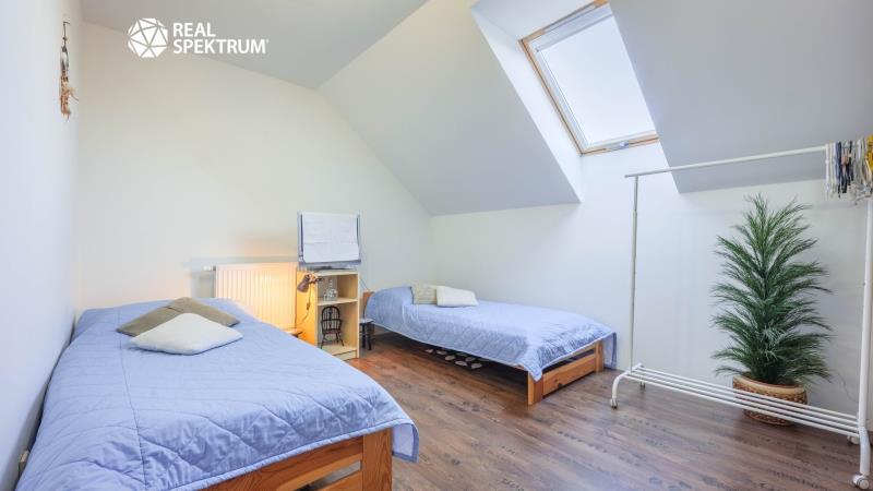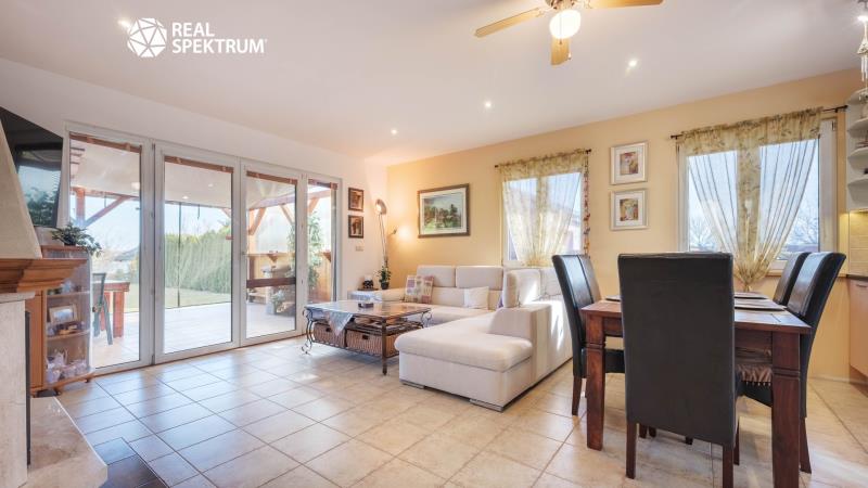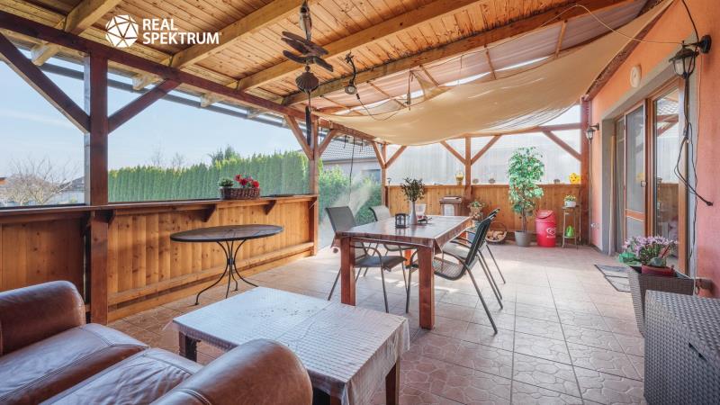 Ve výhradním zastoupení majitele nabízíme k prodeji samostatně stojící rodinný dům o dispozici 5+kk v obci Jevišovka, v klidném prostředí vinařského kraje nedaleko Mušovských jezer. Dům je situován na oploceném pozemku a výměře 1.488 m², který nabízí dostatek soukromí, prostoru i příjemného zázemí pro každodenní rodinný život. Nemovitost je řešena jako nízkonákladová dřevostavba s velmi dobrými izolačními vlastnostmi a je připravena k okamžitému užívání. Interiér nabízí komfortní obytný prostor s plně vybavenou kuchyní včetně americké lednice s barem a kompletního kuchyňského zařízení. Na obytnou část navazuje prostorná terasa s výhledem do zeleně, ideální pro relaxaci, rodinné posezení i letní grilování, s možností budoucího uzavření pro celoroční využití. Velkým benefitem je upravený pozemek s krytým bazénem s ohřevem, garážovým stáním pro více vozidel, dvěma zahradními domky, dřevníkem a ovocnou zahradou s meruňkami, švestkami, jablky, vinnou révou a borůvkovými keři. Vjezd na pozemek je zajištěn elektrickou bránou na dálkové ovládání. Tato nabídka osloví zájemce, kteří hledají pohodlné bydlení bez nutnosti dalších zásadních investic, dostatek venkovního prostoru a klidnou lokalitu s příjemnou atmosférou jižní Moravy. Dispozice domu: 1.NP: předsíň (8,3 m²), hala (4,6 m²), obývací pokoj (23,2 m²) s kuchyní (9,4 m²), pokoj (9,9 m²), koupelna s WC (3,8 m²), sklad (2,1 m²), krytá terasa 2.NP: hala (2,5 m²), pokoj (15,5 m²), pokoj (14,9 m²), pokoj 12,8 m²), koupelna s WC (11,5 m²), balkon (4,4 m²), úložný prostor ve štítě Vybavenost: el. 230/400 V, veřejný vodovod, plyn (topení - ústřední podlahové), kanalizace, klimatizace, alarm a kamerový systém.