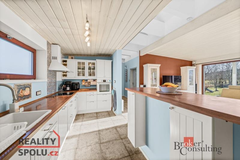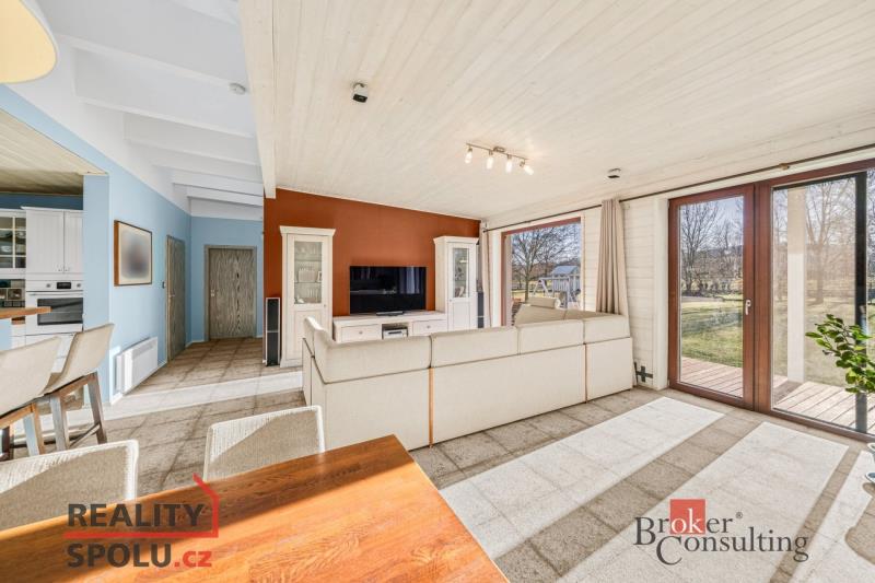 Exkluzivní vila v harmonii s přírodou – Střížovice u Plzně V klidné lokalitě obce Střížovice, pouhých 15 minut od Plzně, nabízíme ke koupi architektonicky čistý rodinný dům v energetickém standardu B, který spojuje moderní technologie, nadčasový design a výjimečný pocit domova. Jednopodlažní vila o dispozici 5+kk a obytné ploše 145 m² je zasazena do rozlehlého pozemku o velikosti 1 523 m² na samém okraji obce, s ničím nerušeným výhledem do zeleně okolních zahrad a luk. Promyšlená orientace ke světovým stranám zajišťuje dostatek denního světla po celý den a přirozené propojení interiéru s exteriérem. Srdcem domu je velkorysý obytný prostor s kuchyní a jídelnou, plynule navazující na zastřešenou jižně orientovanou terasu – ideální místo pro klidná rána i večerní posezení. Interiér je laděn do jednotného, nadčasového stylu s využitím přírodních materiálů, kvalitních dveří a vestavného nábytku na míru. Dům je postaven jako moderní dřevostavba s důrazem na zdravé vnitřní klima, minimální energetickou náročnost a maximální komfort. O provozní úspory se stará solární elektrárna s 42 panely, řízené větrání Aereco a špičková tepelná izolace. Samozřejmostí je napojení na veřejný vodovod i vlastní vrtaná studna. Pečlivě udržovaná zahrada s vzrostlými stromy poskytuje absolutní soukromí i prostor pro relaxaci celé rodiny. Součástí je zahradní domek a dětský kout, vše v dokonalém souladu s architekturou domu. Tato nemovitost je ideální volbou pro náročné klienty, kteří hledají klidné, reprezentativní a energeticky mimořádně úsporné bydlení v bezprostřední blízkosti města, avšak v objetí přírody.