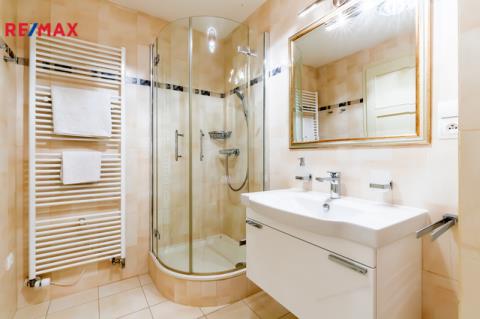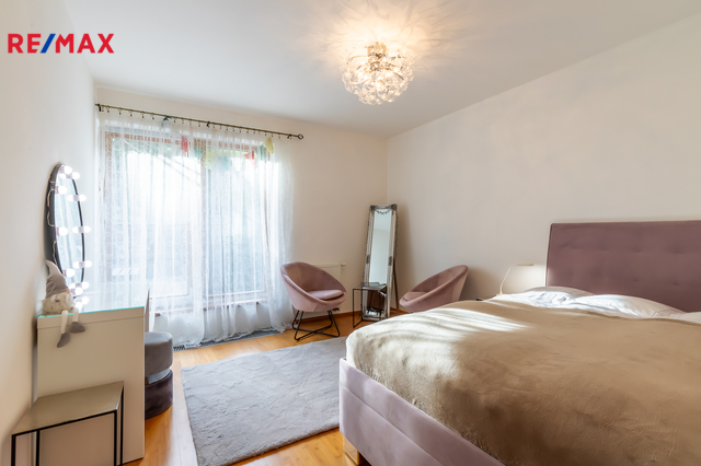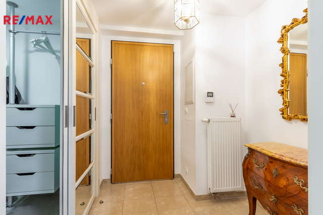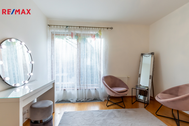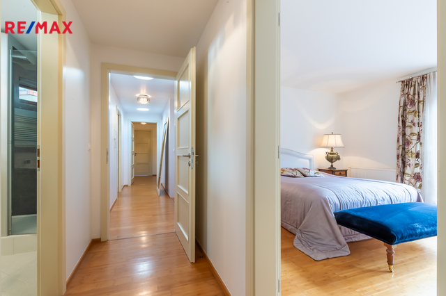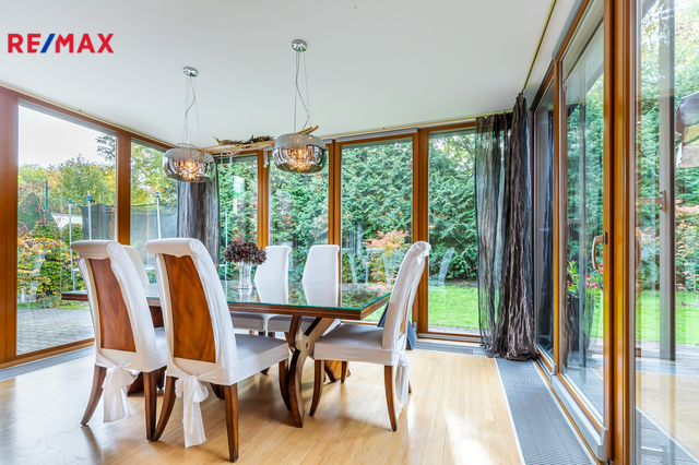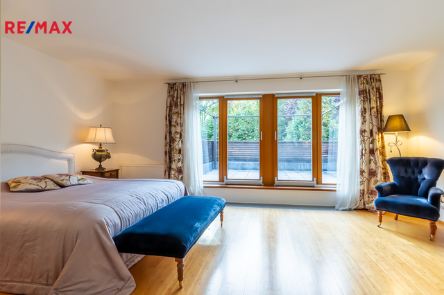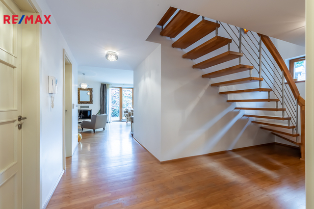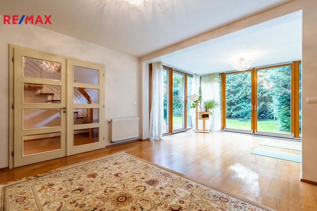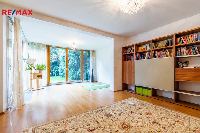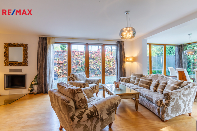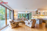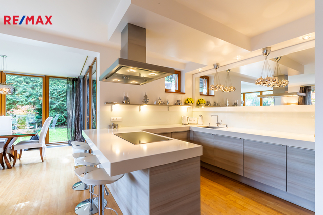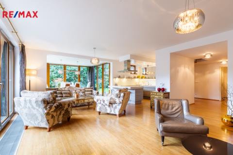Součástí obytné části je designová kuchyň značky Poggenpohl, vybavená veškerými vestavěnými spotřebiči. Velká francouzská okna zajišťují dostatek denního světla a dodávají interiéru vzdušnost a eleganci.