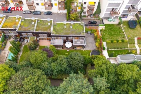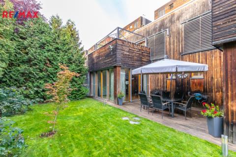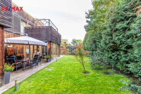Dům je součástí moderního ekologického projektu Arboreum od renomovaného architekta Petra Suskeho, kde je kladen důraz na přírodní materiály, dřevěné obklady fasád a zelené střechy.