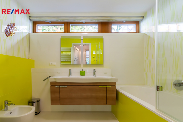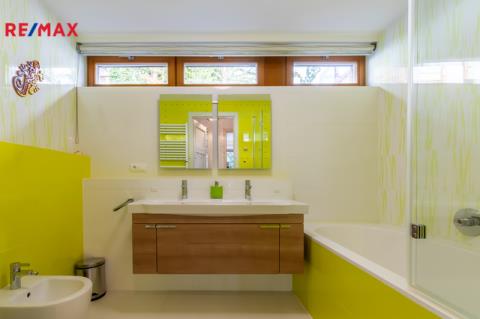 Veškerá sanita značky Villeroy & Boch je zárukou kvality a dlouhé životnosti. V celém domě jsou položeny kvalitní bambusové parkety.
