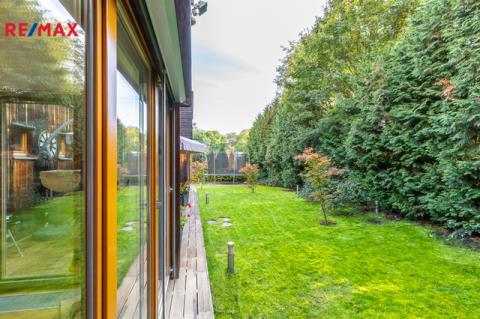 Z obou místností je přímý vstup na zahradu, kde rostou vzrostlé túje o výšce přibližně 7 metrů, které zajišťují maximální soukromí.
