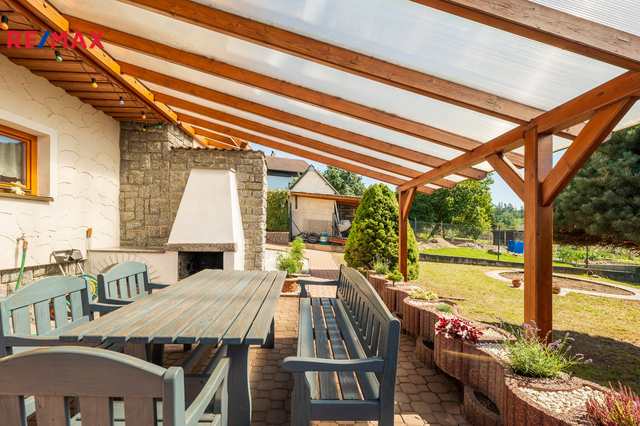 Popis domu: kolaudace proběhla v r. 1993 a v r. 2008 proběhla kompletní rekonstrukce - střecha, okna, okapy a svody, podlahové krytiny, koupelna, dveře, garážová vrata a pergola. Dům je postaven z porobetonových tvárnic/30cm/, z vnitřní strany obezděn thermocihlou 10 cm + perlitová omítka , topení se dá řešit do období mrazu invertorovou klimatizací , dá se instalovat krb do obývacího pokoje, střecha z plechové krytiny s galvanickou povrchovou úpravou a sypaným pískem s 30 letou zárukou /finský satjam/ . Okapy a svody jsou titan zinek s doživotní zárukou. Okna jsou dřevěná, dvojskla /tl.7cm/. Garážová vrata jsou pojezdová automatická z čelní strany, zadní ručně otevírací.