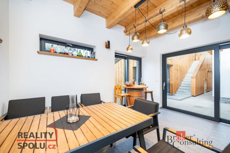 Moderní stavba, dokončená v roce 2023 a uvedená do provozu v roce 2024, je nyní k prodeji. Jedná se o luxusní rekreační objekt se třemi apartmány o celkové výměře 213,5 m². Tato výjimečná nemovitost je situována v malebném prostředí s úchvatným výhledem na rybník Dolce II a nabízí mnoho možností využití – ideální pro vícegenerační bydlení, rekreační sídlo či obchodní příležitost. Nemovitost disponuje až 18 lůžky rozdělenými do tří samostatných, plně vybavených apartmánů. Díky nadstandardnímu vybavení je ideální pro celoroční provoz i rekreační účely. Hosté mohou využít vyhřívaný bazén s protiproudem a vířivkou, finskou saunu na dřevo s ochlazovacím sudem, krytou venkovní kuchyni a profesionální plynový gril. Na pozemku je také pískoviště pro děti a prostorná terasa. Apartmán I (přízemí): Přímý vstup na terasu s venkovním posezením. K dispozici jsou 2 ložnice (dvoulůžka) a rozkládací gauč (plnohodnotné dvoulůžko) v obývacím pokoji – celkem 6 lůžek. Koupelna se sprchovým koutem a toaletou, kuchyňský kout s jídelnou a obývací pokoj. Apartmán II: Přímý výstup na velkou terasu. Obývací pokoj se dvěma rozkládacími gauči (plnohodnotná dvoulůžka) – celkem 4 lůžka. Koupelna se sprchovým koutem a toaletou, kuchyňský kout a jídelna. Apartmán III (mezonet): Přístup na balkon s výhledem do přírody. Zahrnuje 2 ložnice, salonek s rozkládacím gaučem a další gauč v obývacím pokoji – celkem 8 lůžek. Dvě koupelny se sprchovým koutem a toaletou, obývací prostor s kuchyňským koutem a jídelnou. Celkem je k dispozici 5 koupelen se sprchovými kouty, umyvadly a toaletami, což poskytuje maximální komfort pro více osob. Stavba a bazén jsou vytápěny energeticky úsporným tepelným čerpadlem. Finská sauna vytápěná dřevem pomocí kamen Harvia a venkovní gril na plyn poskytují pohodlí pro venkovní vaření. Nemovitost je situována v oblasti bohaté na přírodní krásy a volnočasové aktivity. V těsné blízkosti naleznete půjčovnu elektrokol, kajaků, šlapadel či paddleboardů. Milovníci turistiky a cykloturistiky ocení blízkost přehrady Les Království, zámku Kuks, ZOO Dvůr Králové, skalního města Adršpach a vrcholů jako Černá hora, Rýchory a Sněžka. V zimním období jsou navíc dostupná lyžařská střediska Mladé Buky a Petříkovice. Tato luxusní nemovitost nabízí skvělou možnost kombinace soukromého bydlení a podnikání. Díky třem samostatným apartmánům lze jednotky pronajímat a využívat výhod sezónních výnosů. Nezmeškejte možnost vlastnit tento jedinečný objekt! Pro více informací a domluvu prohlídky nás neváhejte kontaktovat. Těšíme se na Vás!