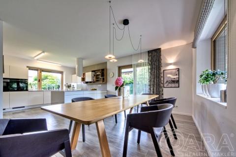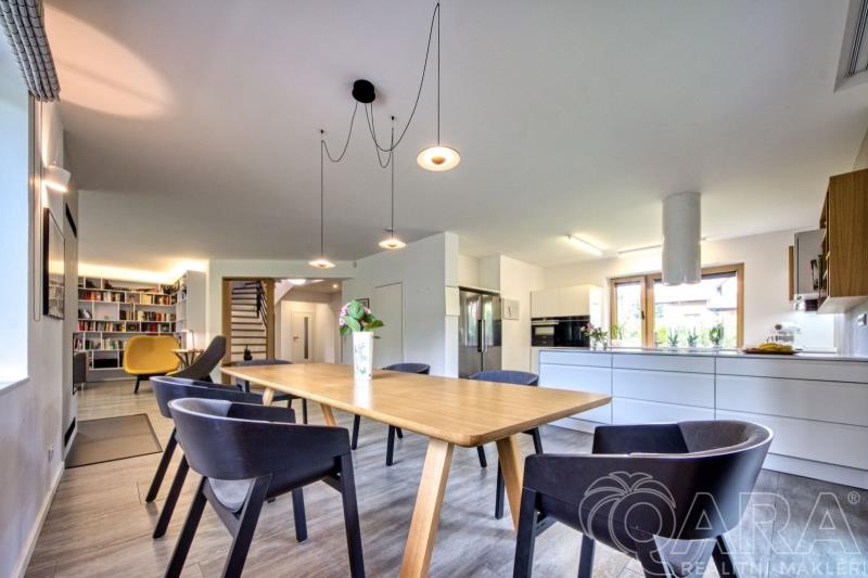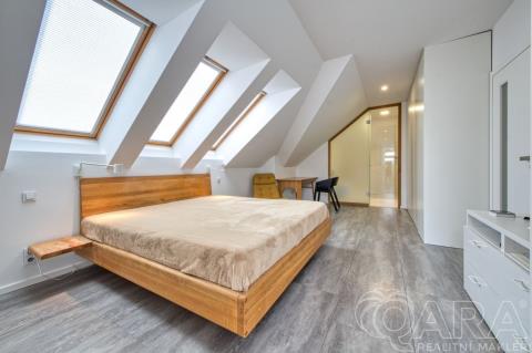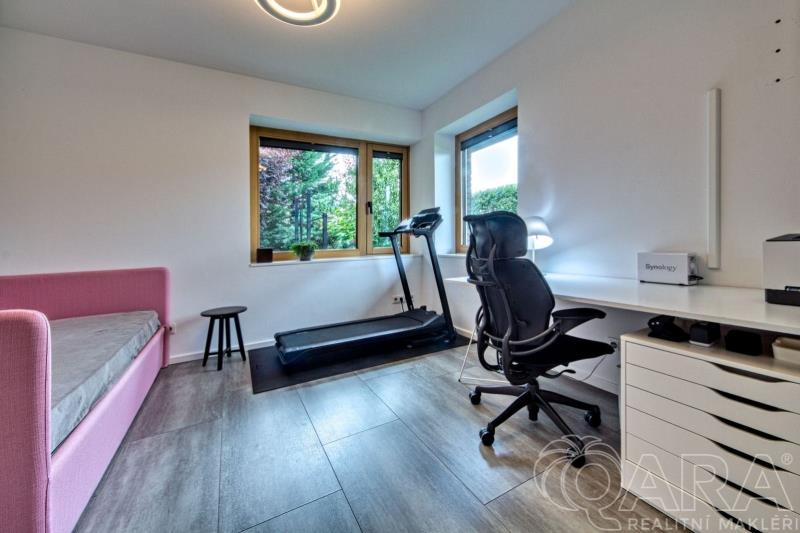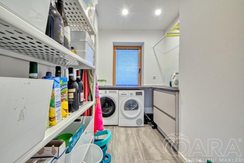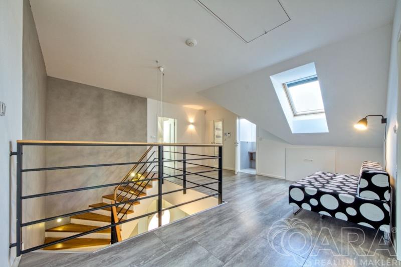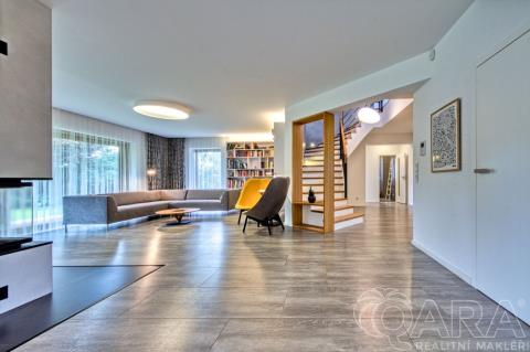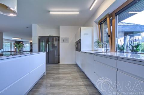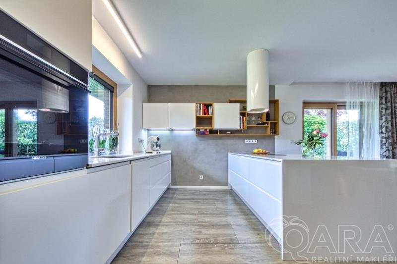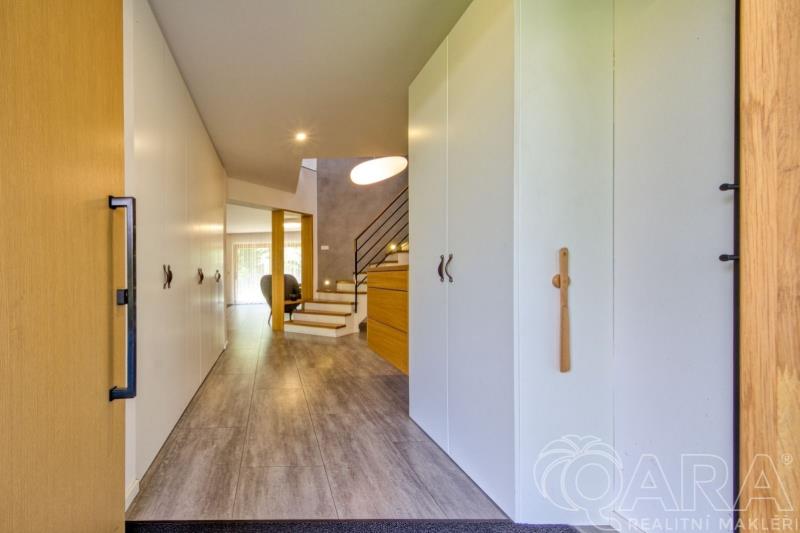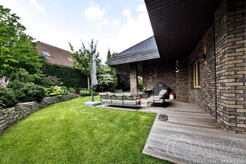 Nabízíme k prodeji prostorný samostatně stojící cihlový dům o užitné ploše 293 m na pozemku o velikosti 805 m, ideální pro komfortní rodinné bydlení. Nemovitost se nachází v klidné a bezpečné části obce v blízkosti prestižní školy Open Gate. Dispozice domu 6+kk poskytuje dostatek prostoru i pro větší rodinu a zároveň nabízí praktické řešení úložných prostor. Dům byl postaven v roce 2016 s důrazem na kvalitu a využití nadstandardních materiálů. Prodává se částečně zařízený. Přesahy střechy přirozeně stíní interiér i exteriér domu a poskytují krytá, intimní místa pro relaxaci, posezení s přáteli nebo grilování. Součástí je krásně upravená, profesionálně založená a již vzrostlá zahrada, která nabízí dostatek prostoru pro odpočinek, hry dětí i rodinná setkání, a zároveň nevyžaduje náročnou údržbu. Co na tomto domě určitě oceníte je velká míra soukromí. Velkou výhodou je také dvougaráž, která zajišťuje pohodlné parkování i další úložné možnosti.