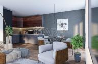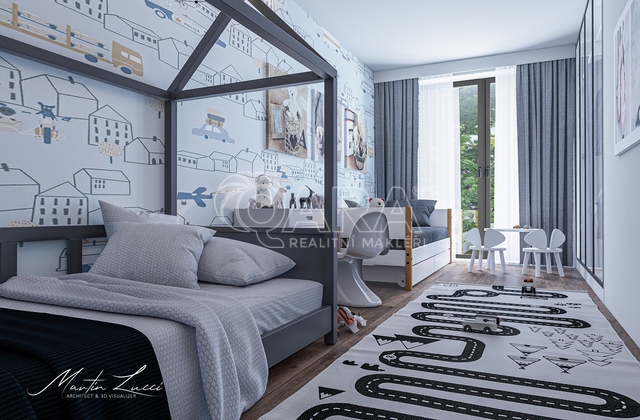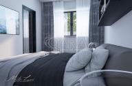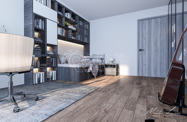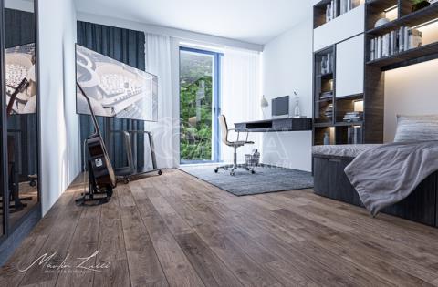 Čeká na vás elegantní design tří koupelen, dveří a podlah, trendové materiály, podlahové vytápění, venkovní automatické rolety a určitě oceníte také šestikomorové provedení oken a dveří se zasklením tepelně izolačními trojskly včetně oblíbených velkých HS portálů.