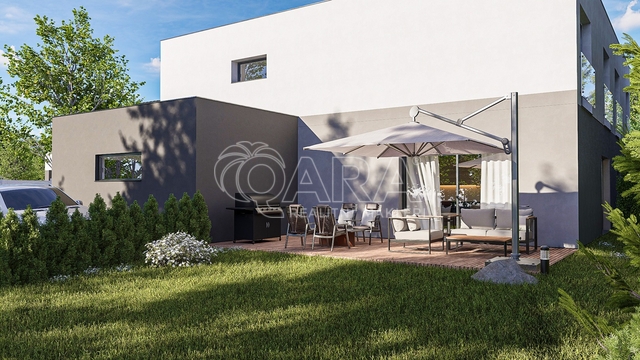 moderní klidné bydlení v nízkoenergetické novostavbě s architektonicky navrženým a detailně promyšleným dispozičním řešením v atraktivním designu.