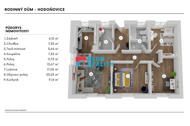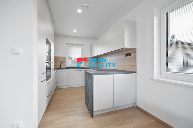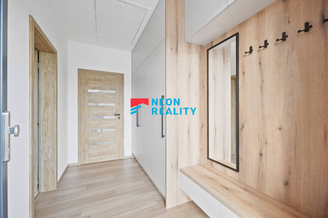Fotografie kuchyňské linky a šatny jsou pouze ilustrační. Dům je nabízený bez vybavení, což umožňuje budoucímu vlastníkovi přizpůsobit si interiér plně podle vlastních představ a životního stylu.