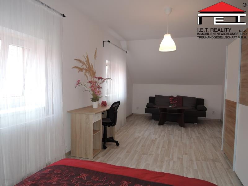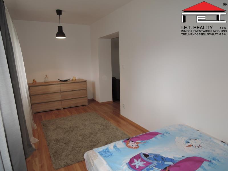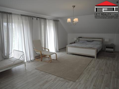 V podkroví jsou dvě velké samostatné ložnice (obě by šly přepažit), jedna z nich má vstupy na dvě terasy (19 a 3,4m2), dále koupelna s rohovou vanou. Z chodby je přístup na půdu.