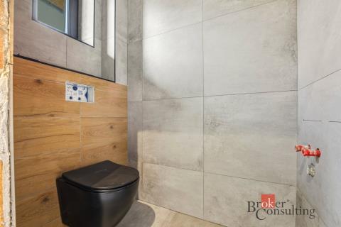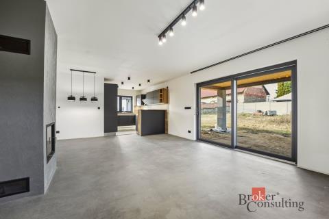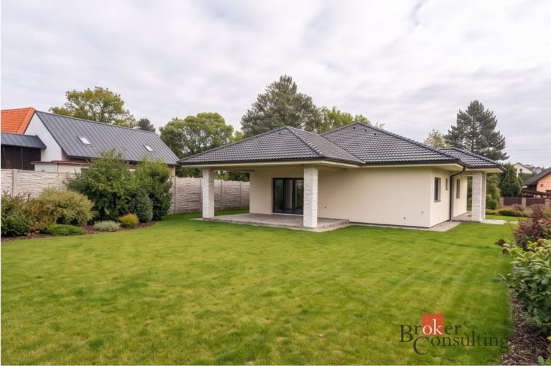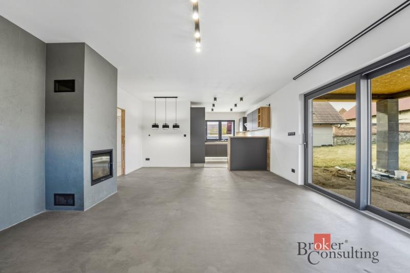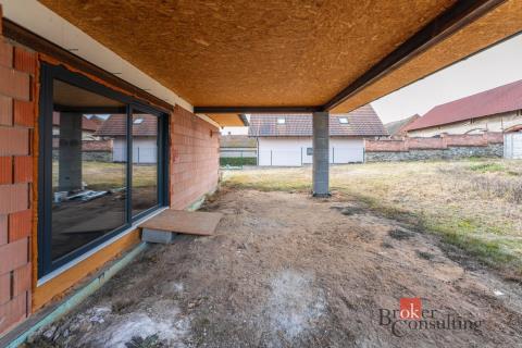 Nabízím k prodeji moderní jednopodlažní rodinný dům v obci Bezděkov u Pardubic, situovaný na rovinatém pozemku o výměře 900 m². Jedná se o novostavbu před kolaudací s užitnou plochou 123,75 m². Dispozice domu je prakticky řešena. Po vstupu se nachází zádveří a chodba, která propojuje jednotlivé místnosti – pracovnu, samostatný pokoj, ložnici, koupelnu s WC a technickou místnost, ve které je umístěno další WC. Dominantou domu je prostorný obývací pokoj s kuchyňským koutem a navazující komorou. Podkroví je pochozí a nabízí dostatek úložného prostoru. Nemovitost je napojena na veřejný vodovod, elektřinu a kanalizaci. V domě je připraveno tepelné čerpadlo určené pro vytápění podlahovým topením. Alternativně lze využít také krbovou vložku, přičemž přikládání je řešeno z technické místnosti, což umožňuje zachovat čistotu v obytném prostoru. Do technické místnosti vede samostatný vstup také z venkovní části domu. Pro úspěšnou kolaudaci je nutné dokončit finální podobu fasády, zapojit tepelné čerpadlo, osadit retenční nádrž a realizovat příjezdovou komunikaci včetně pochozích ploch kolem domu. Současně je potřeba dokončit finální úpravy v koupelně a technické místnosti, položit podlahové krytiny a osadit vnitřní dveře. PVC podlahová krytina je již zakoupena a připravena k instalaci. Na obytnou část navazuje zastřešená terasa určená k venkovnímu posezení a odpočinku. V rohu zahrady je připraven vybetonovaný základ pro budoucí zahradní domek. Dům nabízí moderní a energeticky úsporné bydlení v klidné lokalitě s dobrou dostupností do Pardubic. V případě zájmu zajistím kompletní realitní i finanční servis.