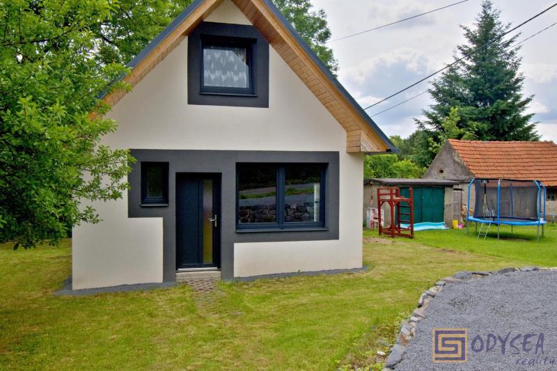 Exklusivně nabízíme k prodeji dům v klidné části obce Bílov, s pozemkem 413 m2. Dům o zastavěné ploše 34 m2 má dispozici 2+kk, v přízemí je obývací pokoj s kuchyňským koutem, ložnice a koupelna s toaletou, v prvním patře se nachází jedna podkrovní místnost. Jedná se montovanou sendvičovou dřevostavbu, která je zateplená polystyrenem 20 cm, sedlová střecha je pokrytá plechovou střešní krytinou. Vytápění zajišťuje klimatizační jednotka, ohřev teplé vody elektrický bojler, odpady jsou svedeny do obecní kanalizace. K domu náleží zahrada osázená ovocnými stromy, součástí jsou dvě parkovací stání pro automobily. V obci je mateřská škola, COOP, nové sportovní centrum, kde je k dispozici víceúčelová sportovní hala, tenisový kurt, dětské hřiště, bowling, fotbalové hřiště. Bílov se nachází nedaleko Bílovce, po dálnici pouhých 25 min. od centra Ostravy. Pokud Vás tato nabídka zaujala, rádi Vás přivítáme na nezávazné prohlídce.