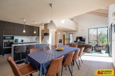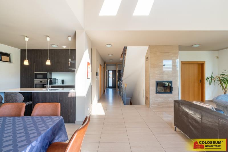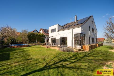 Luxusní vila 8+kk v Bílovicích nad Svitavou – příroda, klid a Brno na dosah Exkluzivně nabízíme k prodeji výjimečnou rodinnou vilu v jedné z nejžádanějších lokalit severně od Brna – v obci Bílovice nad Svitavou. Tato nemovitost spojuje luxusní bydlení, moderní technologie a jedinečné okolí plné zeleně, přičemž město Brno je dostupné do 5 minut. Základní informace: • Dispozice: 8+kk • Užitná plocha: 287 m² • Zastavěná plocha: 302 m² • Pozemek celkem: 800 m² • Zahrada a terasa: 498 m² • Podlaží: 2 nadzemní + podkroví + suterén • Energetická náročnost: třída A (velmi úsporná) Popis nemovitosti: Tato nadstandardní vila byla postavena s důrazem na kvalitu, komfort a dlouhodobou udržitelnost. Nabízí velkorysý, promyšlený prostor s dostatkem přirozeného světla a maximálním soukromím. Dominantou domu je prostorný obývací prostor s kuchyní, který plynule navazuje na terasu a zahradu orientovanou na jihozápad – ideální pro relaxaci i společenská setkání. Krb na dřevo dodává interiéru jedinečnou atmosféru. Technologie a vybavení: • Podlahové vytápění v celém domě • Tepelné čerpadlo s funkcí chlazení • Fotovoltaická elektrárna + baterie • Nabíjecí stanice pro elektromobil Wallbox • Velmi nízké měsíční náklady cca 4 000 Kč (včetně nabíjení vozu) • Zabezpečovací zařízení + kamerový systém • Centrální vysavač • Vlastní vrt na vodu + obecní vodovod + úpravna vody • Elektrické otvírání střešních oken • Elektrické žaluzie na všech oknech Exteriér a pozemek: Rovinatý, udržovaný pozemek o velikosti 800 m² nabízí dostatek prostoru pro odpočinek i rodinné aktivity. Terasa a zahrada s jihozápadní orientací zajišťují dostatek slunce po celý den. Parkování: Možnost parkování až pro 3 vozidla přímo na pozemku. Lokalita: Bílovice nad Svitavou jsou dlouhodobě vyhledávanou lokalitou díky kombinaci výborné dostupnosti do Brna (vlak, MHD) a bezprostřední blízkosti přírody, lesů a čistého ovzduší. Dům se nachází v naprosto klidné ulici s minimálním provozem, což zaručuje maximální soukromí, pohodlí a bezpečí. Shrnutí: Tato vila představuje ideální volbu pro náročné klienty, kteří hledají prostorné, technologicky vyspělé a úsporné bydlení v harmonii s přírodou, přitom jen pár minut od města. Veškeré uvedené plochy jsou přibližné a mají orientační charakter. Výměra pozemku je dle výpisu z listu vlastnictví v katastru nemovitostí. Nemovitost lze financovat hypotečním úvěrem s jehož vyřízením vám rádi pomůžeme. Pro více informací nás neváhejte kontaktovat, těším se s vámi na prohlídku.
