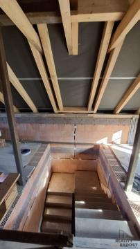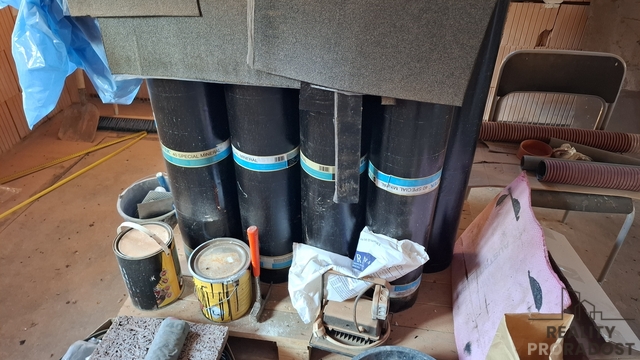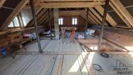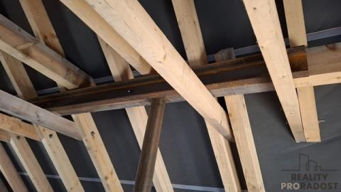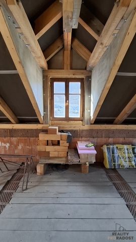 Pro nového majitele k pozdější montáži připraveny oboje vstupní venkovní dveře + velké střešní okno nad schody do patra(uskladněno jinde).