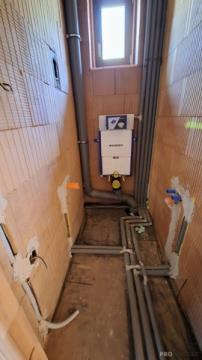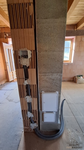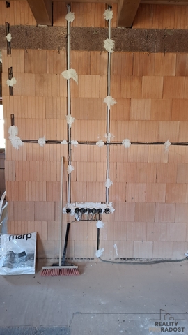 V této chvíli je dokončena: elektroinstalace, vodoinstalace, odpady, dřevěná okna s trojskly + vchodové dveře.