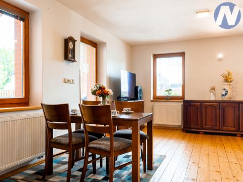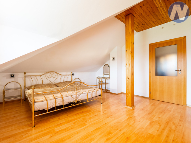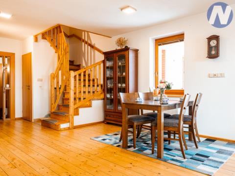 CENA K JEDNÁNÍ!! V exkluzivním zastoupení majitele nabízím k prodeji rodinný dům v klidné části města Blatná u Strakonic. Dům se 2 bytovými jednotkami o dispozici 4+kk+prádelna, 2 šatny, technická místnost, spíž, 3 komory a 3+kk, s krytým parkovacím stáním a dílnou a je ve velmi dobrém stavu. Objekt je napojen na obecní vodovod i kanalizaci. Na pozemku je navíc vlastní studna a plynová přípojka. Vytápění zajišťuje tepelné čerpadlo NIBE doplněné krbovými kamny, což výrazně snižuje náklady na provoz. V přízemí a v části podkroví je byt 4+kk o podlahové ploše 166 m2. V patře je 2. bytová jednotka 3+kk o podlahové ploše 101 m2, která má samostatný vchod – ideální řešení pro dvougenerační bydlení nebo k pronajímání. Pozemek o velikosti 483 m2 je oplocen, s elektrickou bránou pro pohodlný vjezd. Nechybí ani přístřešek na auto a praktický úložný prostor pro zahradní vybavení. Dům obklopuje příjemná zahrada a celkově nabízí zázemí pro pohodlné rodinné bydlení s možností dalšího využití. Skvělá volba pro početnější rodinu, která hledá prostor, soukromí a pohodlí. V Blatné je veškerá občanská vybavenost. Po více informací mě neváhejte kontaktovat a domluvit si prohlídku. PENB v přípravě.