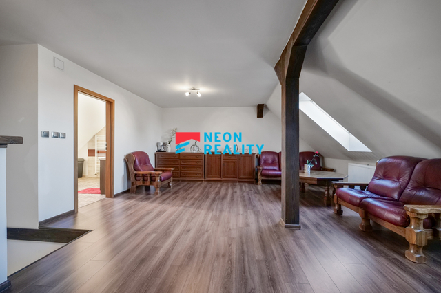 Do patra vedou točené schody s dřevěnými nášlapy. Horní patro prošlo rekonstrukcí přibližně před deseti lety, během níž bylo původní podkroví proměněno v krásný, útulný obytný prostor. Nachází se zde koupelna s rohovou vanou, toaletou a střešními okny, která interiér příjemně prosvětlují. Dále je zde jeden pokoj vhodný jako ložnice či dětský pokoj a otevřená podkrovní část, kterou lze dle potřeby snadno přizpůsobit a rozčlenit na další pokoje či pracovnu.