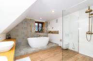 Teplo domova obstarají kachlová kamna a podlahové topení poháněné tepelným čerpadlem. Díky klimatizaci nemusíte mít obavy ani v létě.