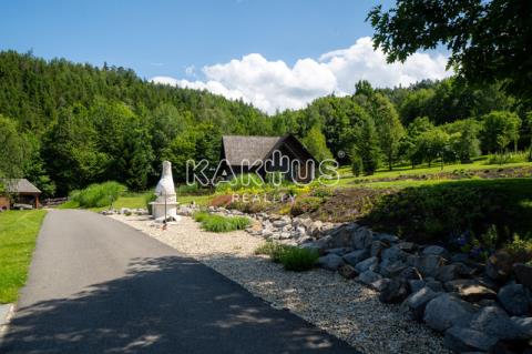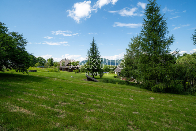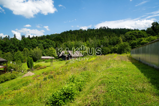 Pozemek je obklopen lesy a volným prostranstvím, a tak vám zaručí dokonalý klid a soukromí. Součástí pozemku je bylinková zahrada (cca 600 m2), švestkový sad a zatravněné hřiště. Díky automatickému zavlažování se udržuje hřiště, bylinková zahrada a zatravněný pozemek ve výborném stavu bez starostí. Na zbytek pozemku je natažena závlaha z dešťových vod. Záchytné nádrže (36 m3) slouží pro zalévaní švestkového sadu i okrasných stromů a keřů. Zdrojem vody jsou dva vrty (+jeden náhradní) a jedna kopaná studna. Odpad je řešen kanalizací a domácí ČOV.