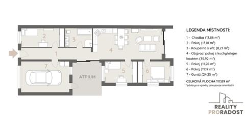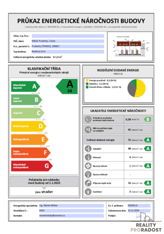 Hledáte moderní a nízkoenergetický rodinný dům v klidné lokalitě? Exkluzivně nabízíme k prodeji novostavbu rodinného domu v jihomoravské obci Bořetice – místě, kde se snoubí klid venkova s komfortem současného bydlení. Tento přízemní dům o dispozici 4+kk vás okouzlí svou příjemnou atmosférou. Srdcem domu je světlý obývací prostor s přímým vstupem na prostornou terasu a výhledem do zahrady – ideální místo pro ranní kávu, rodinné večeře i letní posezení s přáteli. Dům je situován na pozemku o velikosti 386 m² v klidné lokalitě tvořené pouze rodinnými domy, což zaručuje soukromí a bezpečné prostředí pro rodinný život. Celková plocha domu činí 118 m2. Nemovitost bude novému majiteli předána ve stavu, kdy stačí pouze vybrat kuchyňskou linku podle vlastních představ a můžete okamžitě bydlet. Při výstavbě byl kladen důraz na kvalitu použitých materiálů i moderní technologie: • nízkoenergetická třída A • plastová okna s trojskly • vinylové podlahy • podlahové elektrické vytápění • krbová kamna • rekuperace v pokojích pro zdravé vnitřní klima • příprava na klimatizaci • garáž + parkovací stání před domem • nádrž na vodu Koupelna nabízí jak vanu, tak sprchový kout, toaletu i umyvadlo – ideální kombinace pro každodenní pohodlí. Praktickým benefitem domu je garáž s přivedenou vodou a umyvadlem, stejně jako jedno parkovací místa před domem. Atrium dodává domu další rozměr soukromí a klidu. Zahrada je rozdělena na 2 zóny, kde jednu tvoří terasa u domu a druhou terasy pro výsadbu zeleně. Tento dům je ideální volbou pro rodinu, která hledá harmonické bydlení bez kompromisů – moderní, úsporné a připravené k okamžitému bydlení. Obec Bořetice je vinařskou obcí ležící jižně od Brna s veškerým zázemím. Je zde MŠ, ZŠ, lékař, restaurace, kavárna, obchody, pekárna také a významná turistická lokalita vinných sklepů“ Kraví hory“. Obec je známá svou klidnou atmosférou, ideální pro rodinný život. Dojezdová vzdálenost do Hodonína 25 minut, do Brna 45 minut. Ráda vás tímto krásným domem osobně provedu a pomohu vám i s výhodným financováním. Stačí se ozvat – možná právě tady začíná váš nový příběh. Vaše makléřka Marie