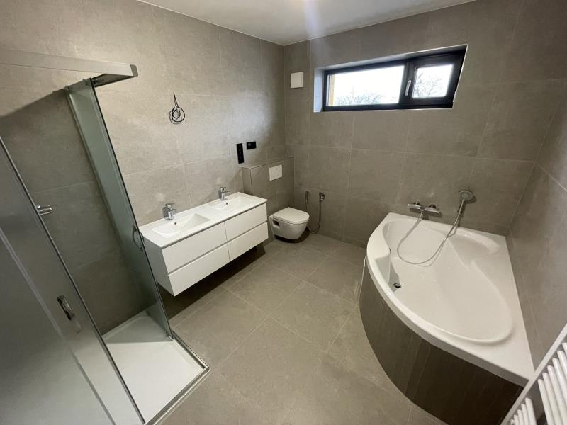 Vybavení: plastová okna s trojskly, podlahové topení v celém domě včetně garáže, plynový kondenzační kotel zn. IMMERGAS, bojler 160 l, fotovoltaika na ohřev vody, příprava na předokenní žaluzie a klimatizaci, videotelefon, rekuperace vzduchu, sanitární výbava a zařizovací předměty zn. Ravak, Gelco a Hansgrohe, příprava na kabelový internet.