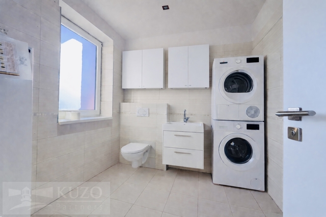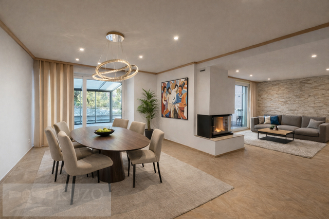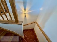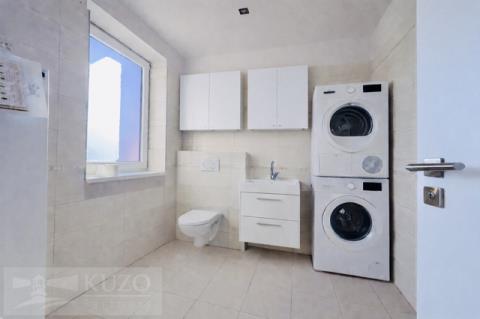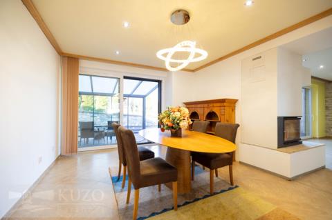V přízemí (126,17m2) se nachází vstupní chodba s šatní skříní a botníkem, prostorný obývací pokoj s krbem, jídelna s kuchyňským koutem s vestavěnými el.spotřebiči, samostatné WC, prostorná šatna s úložným prostorem pod schodištěm, ložnice s šatnou, koupelna se sprchovým koutem, WC, 2xumyvadlo, sauna, technická místnost.