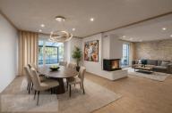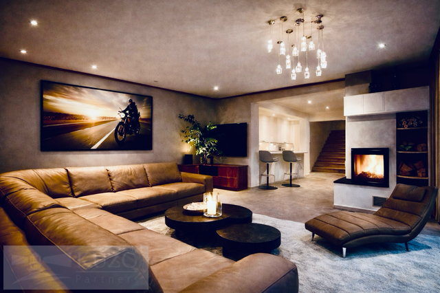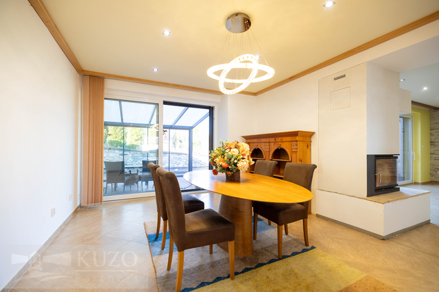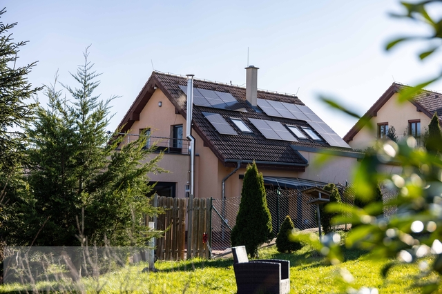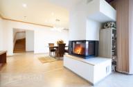Vytápění zajišťuje elektrický kotel s podlahovým topením, doplněný krbem na dřevo, el. krbovými kamny.