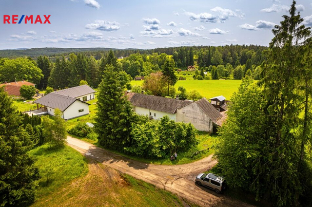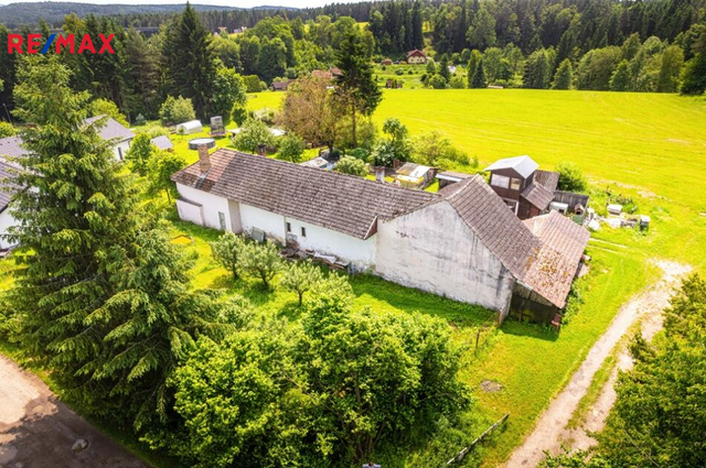 Nabízíme prodej domu s pozemkem v malé jihočeské vesničce Zdíky v okrese Český Krumlov. Jedná se o starší nepodsklepený přízemní rodinný domek. Obytná část domu se sestává ze dvou samostatných bytových jednotek s vlastním vchodem, každá o dispozičním řešení 2+kk a menšími úpravy lze vrátit do původního stavu 3+1. Každá bytová jednotka se sestává z obývacího pokoje s kuchyňským koutem, ložnicí, koupelnou s WC a vstupního zádveří. Elektřina je z veřejné sítě, voda z obecního vodovodu, kanalizace řešena septikem a studna s užitkovou vodou. Vytápění v jedné polovině domu řešeno krbovými kamny s rozvody do dalších místností, druhá polovina domu je vytápěna kamny umístěnými v kuchyni a bojler na ohřev vody. Půdní prostor je přístupný po dřevěném schodišti z chodby. Přestože je dům udržovaný, je potřeba s ohledem na jeho stáří počítat s rekonstrukcí, kterou si nový majitel bude moci již přizpůsobit svým představám o bydlení. Na pozemku se nachází dvě garáže sloužící také jako dílna, kolna a skleník. Celková plocha pozemků činí 2 577 m2, z toho zastavěná plocha a nádvoří 689 m2 a zahrada 1 888 m2. Součástí prodeje je i lesní pozemek o výměře 10 018 m2 a vodní umělá nádrž o ploše 284 m2, obojí je v docházkové vzdálenosti od domu. Je zde také možnost přikoupit nádherný navazující rovinatý pozemek o výměře 4 858 m2. Vesnička Zdíky spadá pod obec Bujanov vzdálenou cca 1 km na severovýchod, kde se nachází obecní úřad, ZŠ a MŠ, obchod, restaurace, autobusové i vlakové spojení. Ostatní veškerá občanská vybavenost se nachází v blízké Kaplici. Další výhodou je také nově budovaná dálnice, která výrazně usnadní skvělou dostupnost do blízkého Českého Krumlova, Českých Budějovic a do Dolního Dvořiště na hraniční přechod do Rakouska. Vzhledem k umístění nemovitosti na konci vesnice v krásné jihočeské přírodě doporučuji tuto nemovitost jak k trvalému bydlení, tak k rekreačnímu pobytu. Pro více informací a domluvení prohlídky mne prosím kontaktujte. S financováním Vám ráda pomohu s naším odborným hypotečním makléřem.
