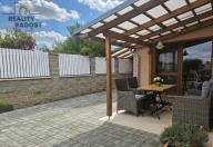 V přízemí domu se nachází prostorná chodba, samostatná kuchyň s východem na dvůr, obývací pokoj s krbem, koupelna, samostatné WC a šatna. Garáž s dílnou mají samostatný vstup ze dvora.