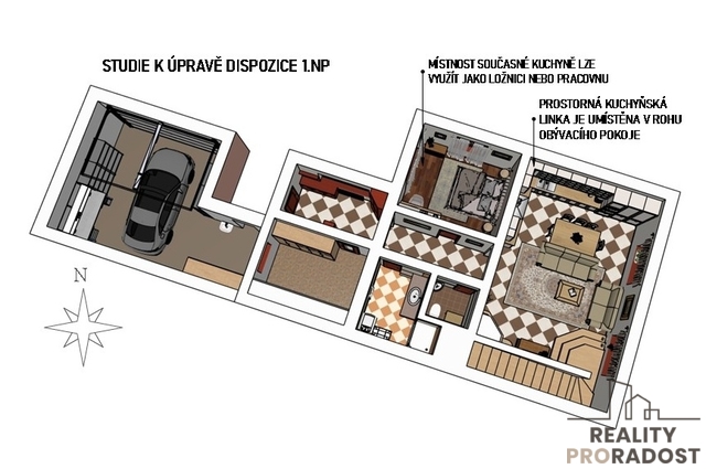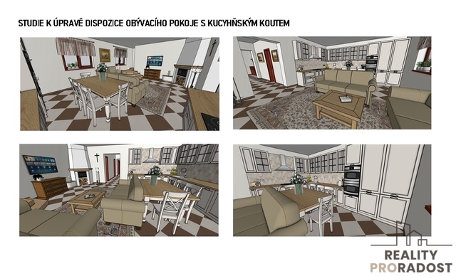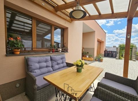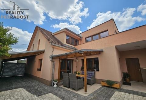 Dvoupodlažní rodinný dům s krásným výhledem na vápencovou dominantu okolí, který prošel celkovou rekonstrukcí, se nachází na slepé a klidné ulici v Čebíně. Nabízí prostorné bydlení pro velkou rodinu, stávající dispozici 4+1 s garáží a dílnou je možné upravit na 6+kk s garáží a dílnou. Uzavřený dvůr s krytým posezením má výhodu parkování na vlastním pozemku pro několik aut, navazující zahradu je možné využít k postavení bazénu, trampolíny, k drobnému zahradničení i dalším rodinným aktivitám. Pozemek má celkovou výměru 433 m2, zastavěná plocha domu 148 m2, užitná plocha domu 208 m2. V přízemí domu se nachází prostorná chodba, samostatná kuchyň s východem na dvůr, obývací pokoj s krbem, koupelna, samostatné WC a šatna. Garáž s dílnou mají samostatný vstup ze dvora. Vrchní patro domu je přístupné po schodišti z obývacího pokoje. Nachází se zde dvě samostatné ložnice, zimní zahrada s krásným výhledem, kterou je možné využít jako další ložnici a prostor na druhou koupelnu, kterou si zájemce může dotvořit dle vlastních představ. V současné době je zde funkční závěsné WC, kombinovaný kotel a přípojka na pračku. Studii s možností úpravy domu naleznete mezi fotodokumentací v inzerci. Kompletně zateplený zděný dům je vytápěn kombinovaným plynovým kotlem se zásobníkem na teplou vodu, v přízemí domu podlahové vytápění, v patře deskové radiátory. Voda i kanalizace jsou obecní. V domě jsou nové rozvody elektřiny, v garáži s elektricky ovládanými vraty i samostatným vstupem ze dvora je připojení na 380 V. Na domě se nachází hromosvod. Ve vrchním patře jsou umístěny dvě klimatizační jednotky. V případě potřeby je možné ve vrchním patře vybudovat z prostorné chodby s posezením další ložnici. Ve spodní části zahrady stojí dřevěný zahradní domek se zavedenou elektřinou a skleník. Obec Čebín leží doslova co by kamenem dohodil od sousední Kuřimi. Nachází se zde základní občanská vybavenost pošta, zdravotnické zařízení, potraviny, restaurace Čebínka, fotbalové a tenisové hřiště, dětská hřiště a další. V současné době se na místní základní škole připravuje i druhý stupeň. Velkou výhodou je nově zbudovaný obchvat obce. Veškeré další služby najdete v nedaleké Kuřimi, popř. v Tišnově. Čebín je z Brna dobře dostupný vlakem, autobusem i po D1. Uvedená cena je vč. provize RK a veškerých poplatků spojených s prodejem nemovitosti.