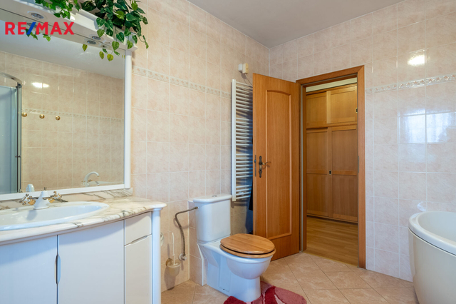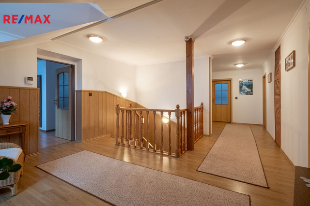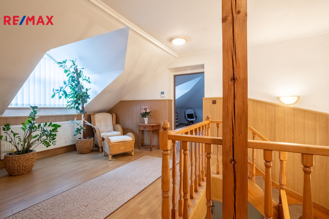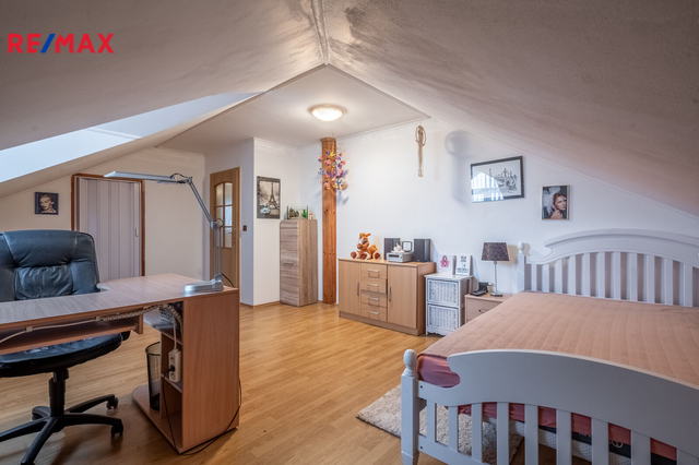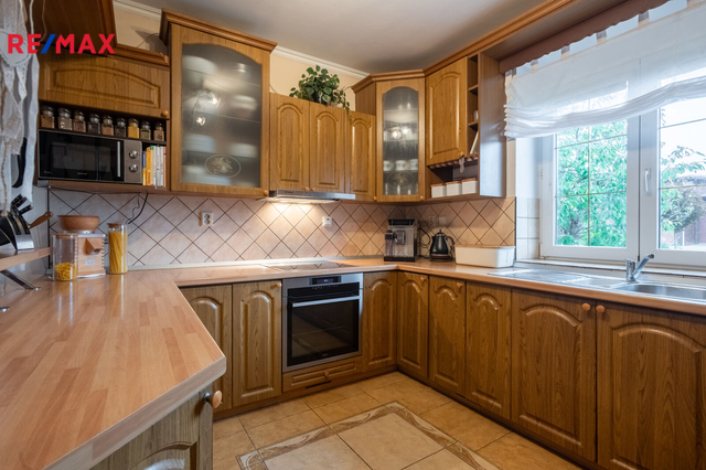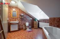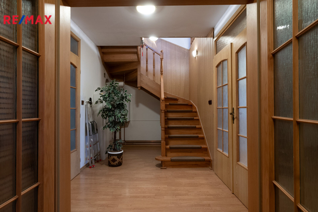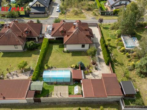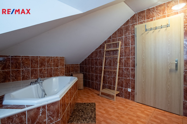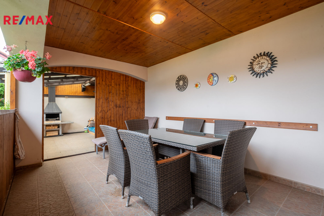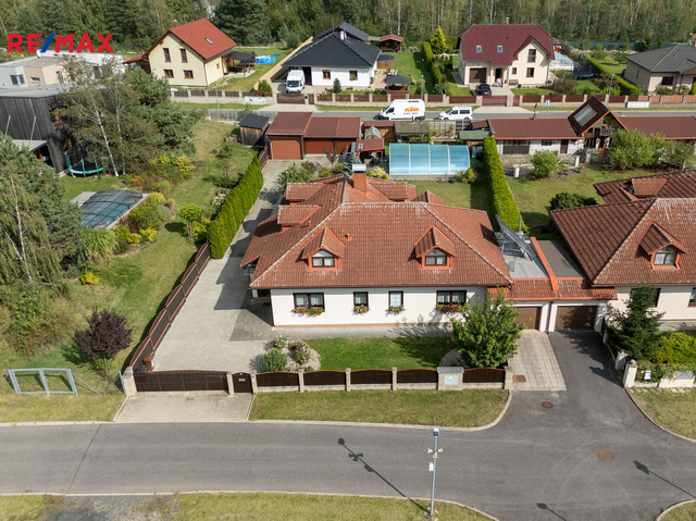 Hledáte prostorný zděný dům s velkou zahradou a krytým bazénem s protiproudem? Nabízíme k prodeji rodinný dům o dispozici 7+1 se zahradou v atraktivní lokalitě Kopeček, ulice Škrétova. Dům je přízemní s obytným podkrovím s užitnou plochu 300 m2. Dům je zděný k keramických tvarovek POROTHERM v tloušťce 44cm, komínová tělesa ze systému SCHIEDEL, plastová okna s izolačním dvojsklem, opatřené venkovními, dálkově ovládanými žaluziemi. Dům je zastřešený valbovým krovem s betonovou krytinou. Dispozice přízemí: zádveří, vstupní hala se schodištěm, kuchyň s jídelnou a spíží, obývací pokoj se vstupem na terasu a zahradu, dětský pokoj, pracovna, koupelna s WC, ložnice a garáž. Dispozice obytného podkroví: galerie se schodištěm 2 dětské pokoje, ložnice, koupelna, WC a komora. Dům je napojen na vodovodní řad, kanalizaci, elektřinu i plyn. Vytápění je zajištěno plynovým kotlem s centrálním rozvodem po domě. V obývacím pokoji a v kuchyni je elektrické podlahové topení, v ostatních místnostech jsou radiátory. Alternativní vytápění je řešeno krbem s výměníkem, umístěném v obývacím pokoji. Ohřev vody bojlerem. Oplocení pozemku z čelní strany sloupky z KB bloků, plotové dílce z dřevěnými latěmi, s bránou na dálkové ovládání, ostatní oplocení z ocelových sloupků a plotových dílců z dřevěnými latěmi. Příslušenství domu tvoří garáž přistavená k rodinnému domu. Na pozemku u rodinného domu je pak další garáž pro tři osobní vozidla, kde jedno stání je pro obytný vůz, další možnost parkování je zajištěna na zpevněné ploše (zámková dlažba). Velká zahrada o výměře 906 m2 nabízí dostatek prostoru pro trávení volného času s rodinou, na zahradě se nachází zastřešený bazén s protiproudem, vyhřívaný je pak solárními kolektory, umístěnými na garáži u rodinného domu. Veškerá občanská vybavenost města, dobrá dostupnost do centra města i na výpadovku směr Mladá Boleslav a Praha. K dispozici kompletní původní projektová a technická dokumentace. V přídě zájmu o prohlídku a více informací kontaktujte makléře.