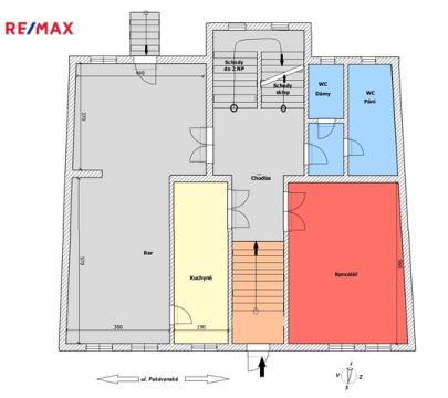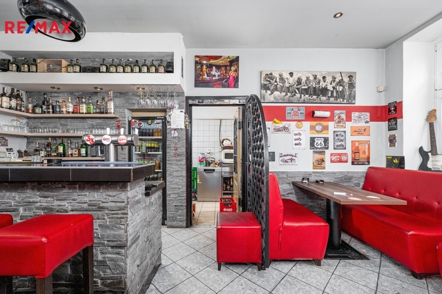 V přízemí domu je aktuálně provozovaný bar 25 m2 s menším zázemím - kuchyní se zavedeným chodem, který disponuje vstupem na velký uzavřený dvůr. Ten dnes slouží jako venkovní posezení pro hosty, do budoucna se však nabízí možnost jeho přeměny na soukromou zahradu, klidný vnitroblok nebo reprezentativní dvorek pro jiný typ provozu.