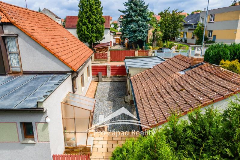 Nabízíme k prodeji dvoupodlažní rodinný dům s zahradou, terasou, garáží a dalšími stavbami v vilové čtvrti na okraji Chlumčan. Nyní má RD dispozici 5+1 s podlahovou plochou 154,40 m² v obou NP a možnost další vestavby v II NP a tím rozšíření o 34,07 m². Předsíň RD má v přízemí dva vchody, wc a koupelnou byla již zrekonstruována. Nad vchodovou přístavbou je terasa ( 21,28 ) z výhledem na celý pozemek na jih ( 537 m² ). Dále je součástí domu je garáž 16.80 m² a přilehlý sklad a dílna 17,25 m². Všechny okna RD jsou plastová, dům je podsklepený ( 26 m² ), kde je momentálně starší plynový kotel na který je napojený na celý dům. Možná je výstavba fotovoltaiky a koupě kotle na vytápění s dotací - poradíme, zařídíme. Vodovodní rozvody v plastu, dům je napojen na obecní kanalizaci. Po zateplení fasády a střechy domu a osazením automatického kotle na pelety, se dům dostává do kategorie nízkoenergetických domů, viz nově zpracovaný PENB. Udržovaná zahrada je osazena ovocnými stromy, dostatečným místem na venkovní pěstování nebo bazén a skleníkem s dalšími zděnými užitkovými stavbami. K dispozici je studna na užitkovou vodu. Vjezd z Komenského ulice je ovládán elektrickými vraty, u domu jsou dvě místa na zaparkování aut. Rodinný dům se prodává komplet vybavený nebo vyklizený dle dohody. Chlumčany jsou obec v okrese Plzeň-jih v Plzeňském kraji. Čítá přibližně 2 400 obyvatel. Průměrná nadmořská výška intravilánu je 390 m. Dojezdová doba dálnici D5 je 10 minut, do Plzně 19 minut. Hypotéku nebo úvěr ze stavebního spoření všech bank vám zjistíme do 24 hodin. Těšíme se na vaší prohlídku.
