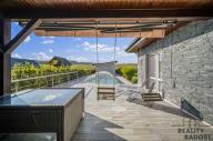 Levá část domu nabízí kuchyni propojenou s prostorným obývacím pokojem, který tvoří hlavní obytný prostor domu a místo pro setkávání rodiny. Z obývacího pokoje je přímý vstup na velkou terasu a dále k bazénu.