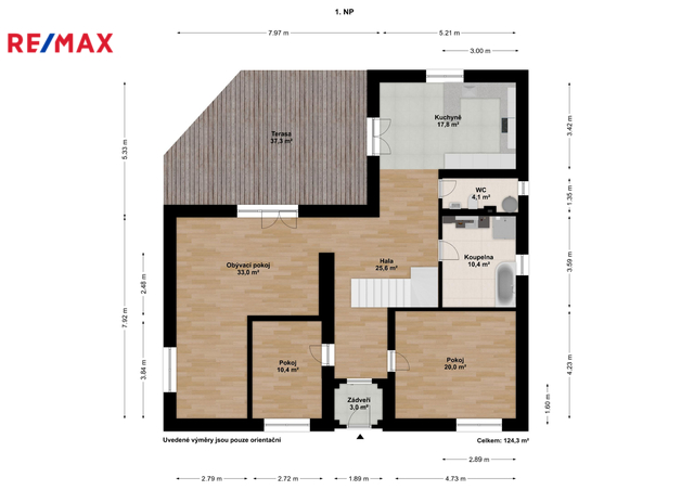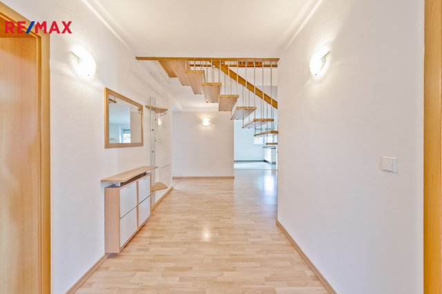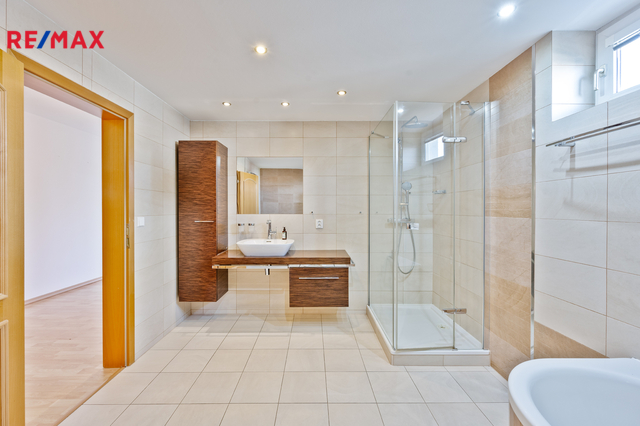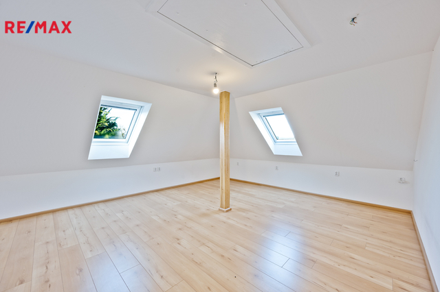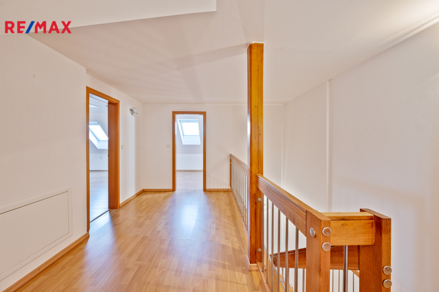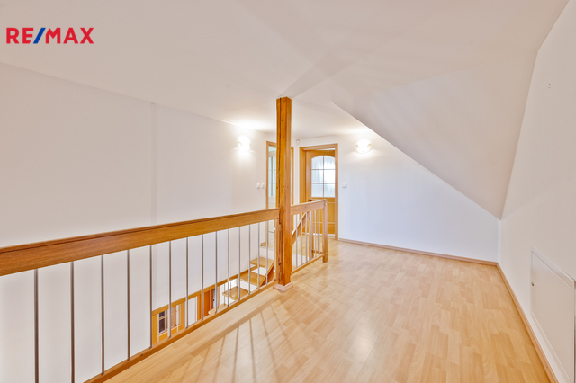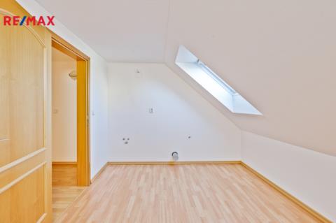 V obytném podkroví se nachází chodba se vstupy do dalších tří pokojů a koupelny s WC. Koupelna je zatím nedokončená, velkou výhodou je, že si ji každý může zařídit dle vlastních představ. Výměry jednotlivých místností a jejich dispozice jsou uvedeny ve fotogalerii.