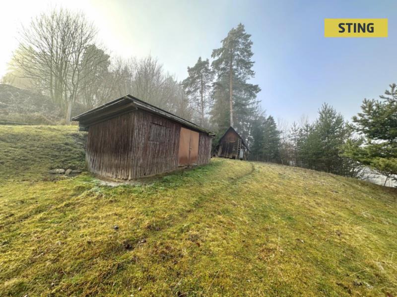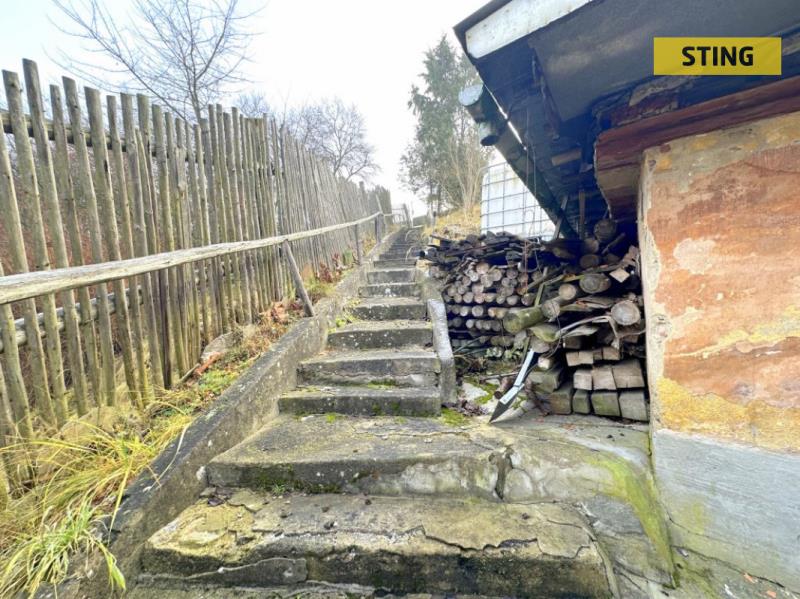 Za domem se rozprostírá rozlehlá zahrada ve svahu, která nabízí nádherné výhledy do okolní krajiny. Najdete zde několik ovocných stromů a dostatek prostoru pro zahradničení, chov zvířat nebo jen klidné posezení v přírodě. V minulosti se zde pásly ovce, což jen podtrhuje venkovský a idylický charakter tohoto místa.