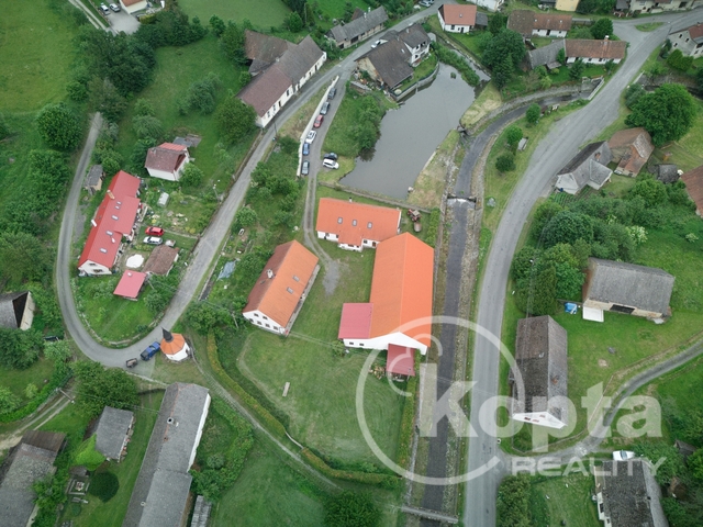 Kopta reality nabízí prodej usedlosti a bývalého mlýna se souborem 3 budov. Objekt je situován v těsném sousedství místního rybníčka v obci Víska - část obce Čmelíny a to cca 5 km od Nepomuku na Plzni - jihu. Všechny 3 budovy jsou po rekonstrukci střechy, fasády, elektřiny, rozvodů, sítí. Dvě budovy jsou určené k trvalému bydlení a jedna budova má v přízemí velké nebytové prostory, dále 2 garáže a velký otevřený půdní prostor. Celý dvůr je obklopen domy a vzrostlými thujemi, tedy nabízí dostatek soukromí všem uživatelům objektu. Nabízí se zde možnost spojení bydlení s podnikatelskou aktivitou, či celý objekt využít komerčně jak pro ubytování, tak pro možné workshopy, semináře, teambuildingy, glamping . . . . apod. Nebytové prostory a prostory garáží jsou zase možností pro podnikatelský sektor - truhlárna, kovovýroba, zámečnictví, autodílna a další. Objekt má k dispozici 2 vlastní studny a 1 ČOV - čističku odpadních vod. Možná právě toto místo, je tím, kde se splní Vaše vize a sny. Na prohlídku a setkání se těší. Jan Kopta, DiS. realitní makléř Kopta reality s.r.o.