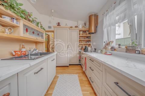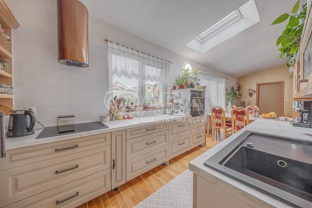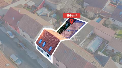 Ve výhradním zastoupení majitelů Vám nabízíme prodej řadového rodinného domu v širším centru Dobříše, v ul. Pionýrů. Dům v původní zástavbě prošel v r. 2012 kompletní rekonstrukcí, přízemí bylo rozšířeno o další obytné místnosti a byla provedena půdní vestavba, kde vzniklo obytné podkroví. To je možné užívat jako samostatný byt v rámci vícegeneračního, popř. nájemního bydlení. Podkrovní byt je přístupný krytým externím schodištěm a pro maximální využití podkrovní plochy byl instalován elektricky ovládaný vstupní poklop. Celková užitná plocha bytu v přízemí je 80,6 m2, podkrovní vestavba má užitnou plochu 58,4 m2.