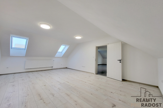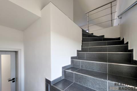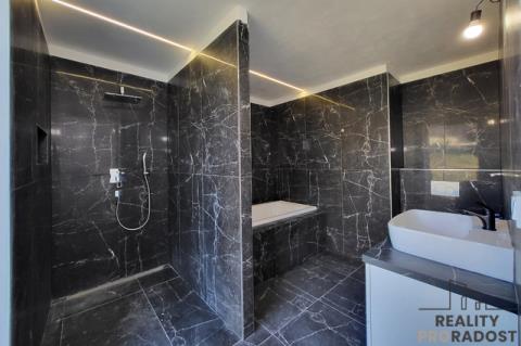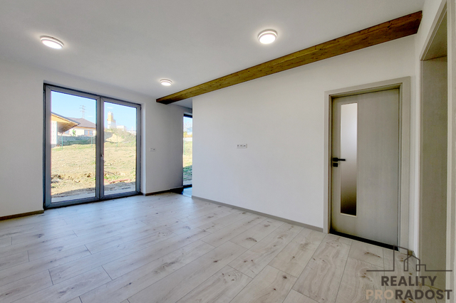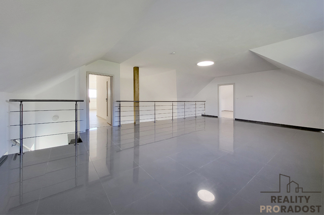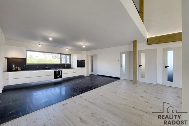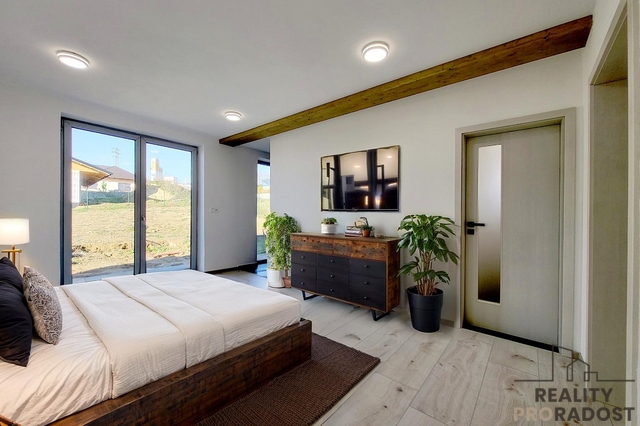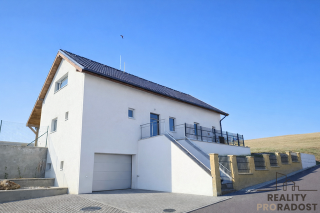 Hledáte moderní, prostorově velkorysé bydlení s otevřeným obytným prostorem a galerií, které nabízí klid, soukromí a pocit skutečného domova v Dobšicích u Znojma? Ve výhradním zastoupení nabízím k prodeji architektonicky výjimečnou moderní novostavbu rodinného domu 5+kk o užitné ploše 246 m² na pozemku o celkové výměře 959 m², situovanou v klidné a nově vznikající rezidenční části Dobšic u Znojma, na ulici Výsluní. Dům je kompletně stavebně dokončen a aktuálně probíhá kolaudační řízení s předpokládaným dokončením do 04/2026. Nemovitost je tak připravena k finálnímu převzetí novým majitelem po dokončení kolaudace. Kupní cena zahrnuje příspěvek 300 000 Kč na realizaci kuchyňské linky včetně spotřebičů dle výběru budoucího majitele. Interiér tak může být finálně dokončen přesně podle individuálních požadavků nového vlastníka, bez kompromisů v kvalitě i designu. Nemovitost je realizována v energeticky úsporném standardu B. Vytápění je řešeno podlahovým systémem v kombinaci s tepelným čerpadlem, což zajišťuje dlouhodobě efektivní provoz a stabilní tepelný komfort. Součástí technického řešení je retenční nádrž na dešťovou vodu a příprava plynové přípojky na hranici pozemku. Dispozice domu je rozložena do dvou nadzemních podlaží a nabízí jasně oddělenou obytnou a klidovou část. V 1. NP se nachází hlavní obytný prostor s přípravou na kuchyňskou linku a přímým vstupem na terasu a zahradu (cca 650 m²). Dále je zde ložnice se šatnou a vlastní koupelnou s WC, samostatný pokoj se šatnou, další samostatná koupelna s WC a technická místnost. Na terasu je kromě obytné části přístup také z ložnice i druhého pokoje. Ve 2. NP jsou umístěny dva samostatné pokoje a otevřená galerie vhodná jako pracovna, knihovna nebo relaxační zóna. Velkorysá užitná plocha 246 m² poskytuje komfortní prostor pro rodinné bydlení i možnost kombinace s podnikáním či prací z domova. Pozemek o výměře 959 m² nabízí dostatek soukromí, stabilní rezidenční prostředí a plnohodnotné zahradní zázemí, které je v této lokalitě nadstandardem. Součástí domu je prostorná garáž, dvě parkovací místa na vlastním pozemku a sklep o velikosti 16 m². Nemovitost je napojena na elektřinu, veřejný vodovod, kanalizaci a internetové připojení. Dobšice patří mezi dlouhodobě vyhledávané lokality s rychlou dostupností do Znojma a plnou občanskou vybaveností v dosahu. Nemovitost představuje moderní, prostorově nadstandardní bydlení s jasně definovanými technickými parametry a dokončenou stavební fází, připravené k finálnímu převzetí. Aktuálně probíhá aktivní prodejní fáze nemovitosti, prohlídky realizujeme individuálně po předchozí domluvě.