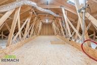 Hlavní obytná část domu (67 m2) je tvořena prostorným obývacím pokojem s velkými okny, která propouštějí dostatek denního světla a propojují interiér s venkovním prostorem. Moderní kuchyně s jídelnou poskytuje dostatek místa pro společné chvíle s rodinou a přáteli. Za kuchyňskou linkou je počítáno s velkou spižírnou, která se rozprostírá za celou její šíří. K ložnici se šatnou (28 m²) máte rodičovskou koupelnu se sprchovým koutem a toaletou. Děti a jejich pokoje jsou umístěny v patře, kde se zároveň nachází druhá koupelna s vanou i sprchou a samostatná toaleta. Pračku se sušičkou umístíte nejen v prvním patře v samostatné místnosti (prádelně), případně i v dospělácké koupelně, kde jsou připraveny rozvody.
