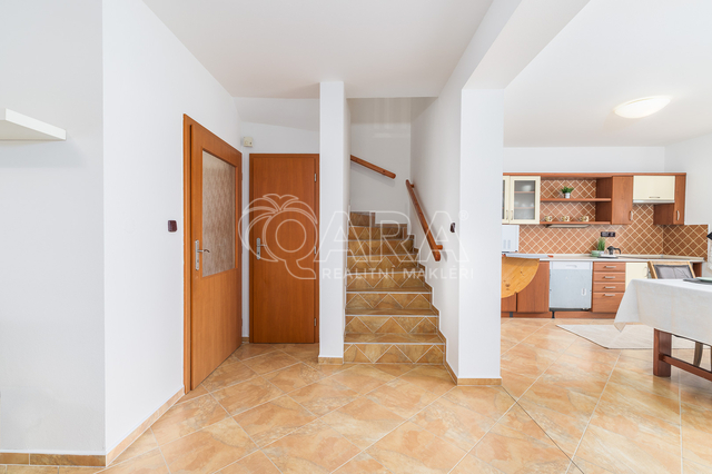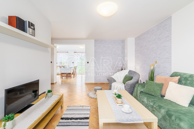 Dům jako takový poskytne užitnou plochu o necelých 120 m2 a je součástí řadového rodinného bloku, poskytne 5 obytných pokojů, dvě koupelny, prostorný obývací pokoj s kuchyní a jídelnou, technické komory a spíž. Vzdušný obývací pokoj vám skvěle doplní přímý vstup na zastřešenou terasu o výměře 14,5 m2, ideální pro posezení a grilování. Naopak na druhé straně domu budete mít z kuchyně vstup na menší zahradu za domem, kde budete mít ideální klidné prostředí na váš relax, na opalování nebo odpočinek třeba na houpačce. Jako poslední k praktičnosti domu napomůže vlastní přístřešek na auta a zahradní domek/skladovací místnost skvělá na uložení vašeho sportovního vybavení a nebo zahradní techniky. Pro další parkování je možné přikoupit ještě jedno vyhrazené parkovací stání před domem.