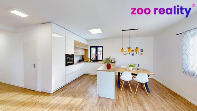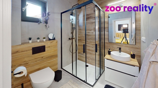 Výjimečná příležitost ke koupi, stačí vzít klíče a bydlet v moderní novostavbě v klidné a vyhledávané lokalitě Blatenská ve Frymburku. Dům s užitnou plochou 120 m² o dispozici 3+kk zahrnuje prostorný obývací pokoj propojený s jídelním koutem a kuchyní. Dále pak ložnici, která nabízí i komfort navazující koupelny a šatny. Následně pokoj, koupelnu, samostatné WC, praktickou spíž a technickou místnost. K dispozici je i půda jakožto úložný prostor. Z obývacího pokoje je přímý vstup na terasu, která je orientovaná na jihozápad. Na terasu navazuje zahrada o výměře 478 m², která poskytuje dostatek soukromí i prostoru pro relaxaci. Pozemek je nyní částečně oplocen. Parkování je zajištěno až třemi parkovacími stáními přímo u domu. Zděný dům byl kolaudován v roce 2024 a je kvalitně zateplen, což zajišťuje nízké provozní náklady. Dům je celou dobu používán minimálně, spíše pro rekreaci. Vytápění je řešeno tepelným čerpadlem s podlahovým topením v celém domě. Příjemnou atmosféru i alternativní zdroj tepla, nabízí krb se zadním přikládáním, chytře umístěný ve zdi mezi obývacím pokojem a technickou místností. Díky tomuto řešení není nutné přikládat z obytného prostoru, což výrazně zvyšuje komfort a čistotu bydlení. Nevyužívaná plynová přípojka je na hranici pozemku. O kvalitní tepelnou i zvukovou izolaci se starají okna značky VEKRA, která jsou doplněna o elektrické venkovní žaluzie v každé místnosti. Tento dům představuje ideální kombinaci moderního bydlení a funkčnosti v atraktivní lokalitě jižních Čech kde jste na dosah přírodě. Nemovitost je k dispozici od 1.9.2026, případně dle domluvy. Městys Frymburk leží na břehu Lipna obklopený Šumavou. Je ideálním místem pro vyznavače aktivního života. V každém ročním období si zde najdete zábavu. Máte možnost využít mnoho turistických i cyklistických tras, v zimě můžete lyžovat na místním svahu nebo jet do 12 km vzdáleného Kramolína či na Hochficht. Případně bruslit na jezeře nebo jít na běžky až do vyčerpání sil. Frymburk nabízí výbornou občanskou vybavenost i dobrou dopravní obslužnost do okolních měst. Český Krumlov - 30 km, České Budějovice - 50 km, Dolní Dvořiště - 30 km. V případě, že vás nabídka zaujala, neváhejte mě kontaktovat. Zodpovím vaše dotazy a zajistím prohlídku nemovitosti. Mohu vám pomoci i se zajištěním financování. Neváhejte využít virtuální prohlídku nemovitosti, která je připojena v inzerci. Pokud si budete chtít projít dům bez vybavení - stačí v levém dolním rohu zaškrtnout piktogram křesla.